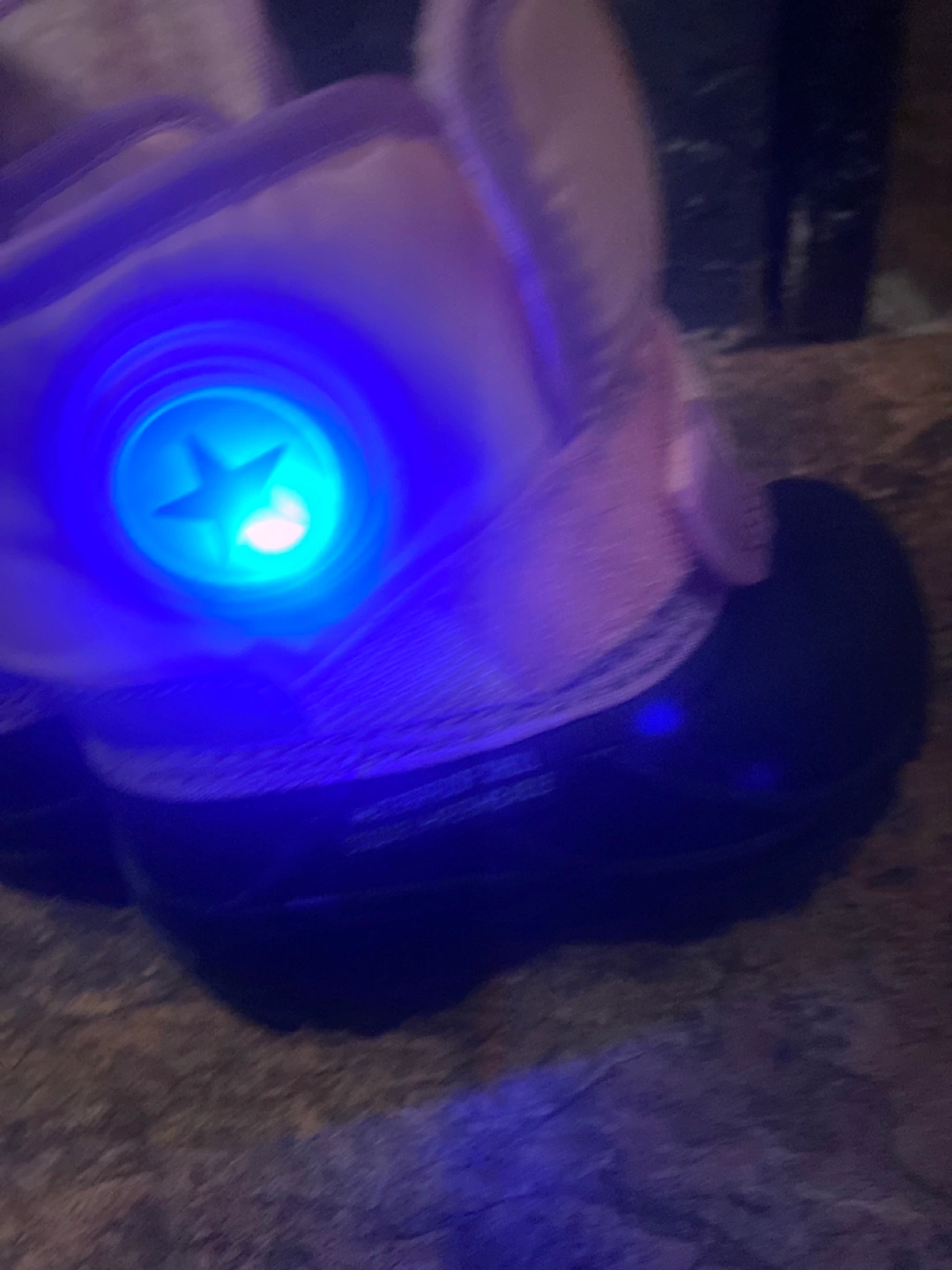 Adorable pink and purple toddler snow boots. Waterproof shell. Feature light-up star accents. Great for winter fun. Size 4 pick up location Royal and Mimico