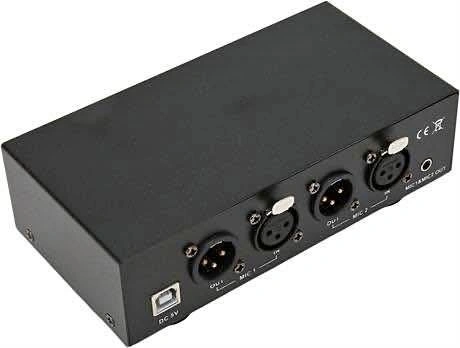 This phantom power supply is designed for dual microphones, offering balanced input and output to support simultaneous use and suppress interference. It features a built-in low pass filter to eliminate external noise. It's a universal 48V power supply, compatible with most 48V condenser microphones.
