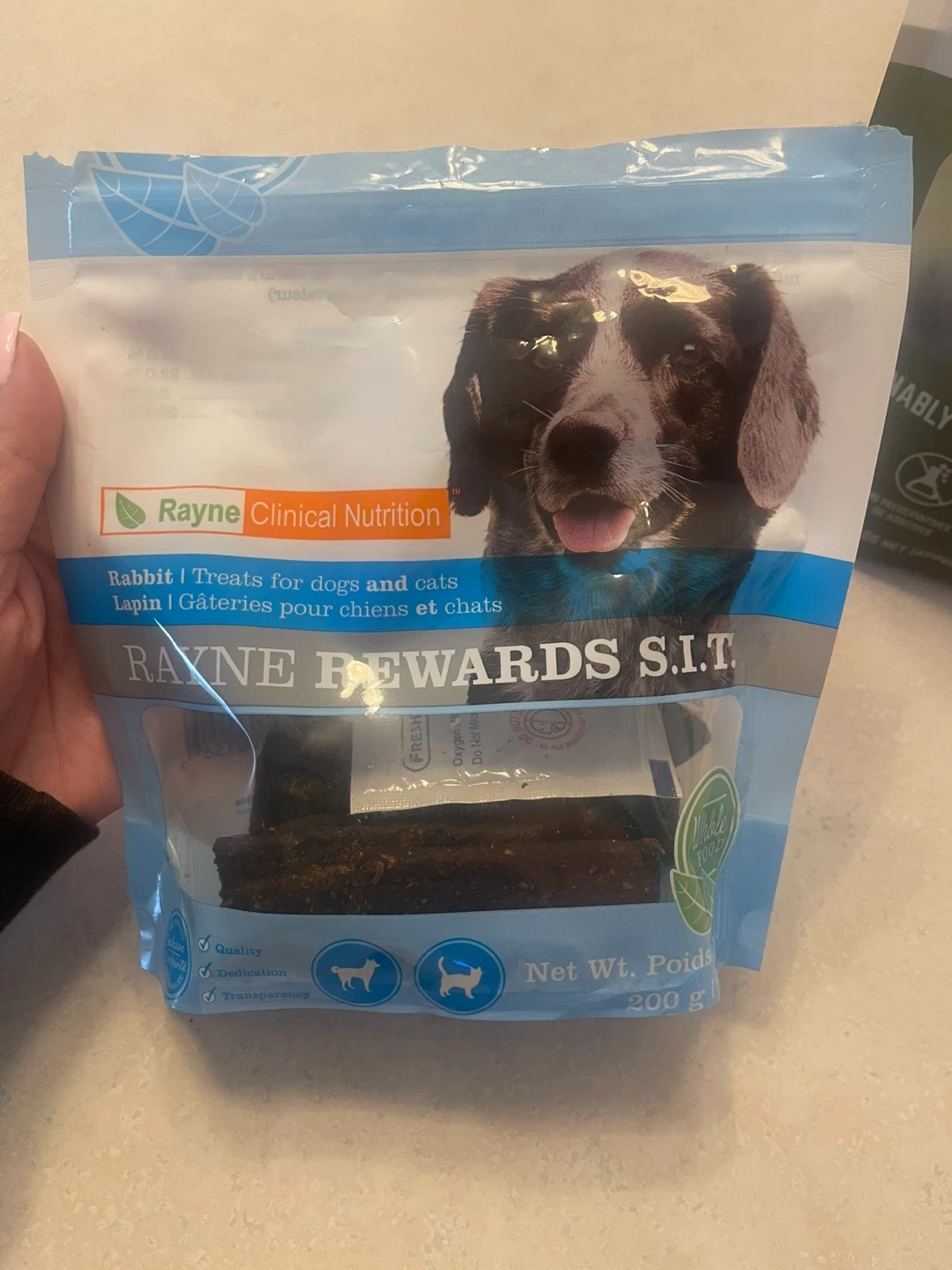 Rayne rabbit treats- 137.57 grams left out of 200 gram bag. Valued at $38.28