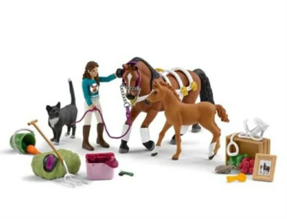 The Advent Calendar from HORSE CLUB offers 24 great surprises for real horse fans! Whoever opens all the little doors, gets to put the white crampons on the mare and help her into the bridle. Together with Sofia we head to our training session. The foal watches and sniffs everything with interest. For a moment, it even forgets the crunchy carrot that's waiting in the bucket.