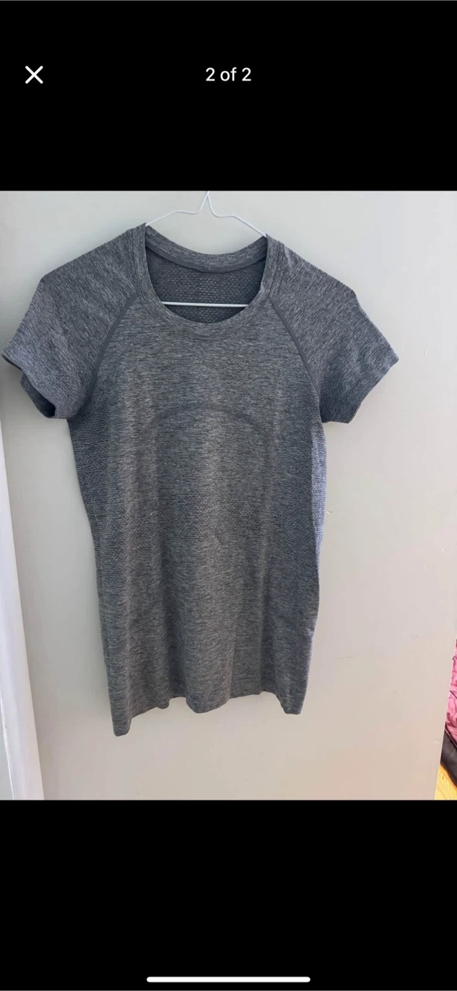 Selling a Lululemon grey t-shirt. It's in great condition and ready for a new home! It's a stylish and comfortable piece, perfect for workouts or casual wear