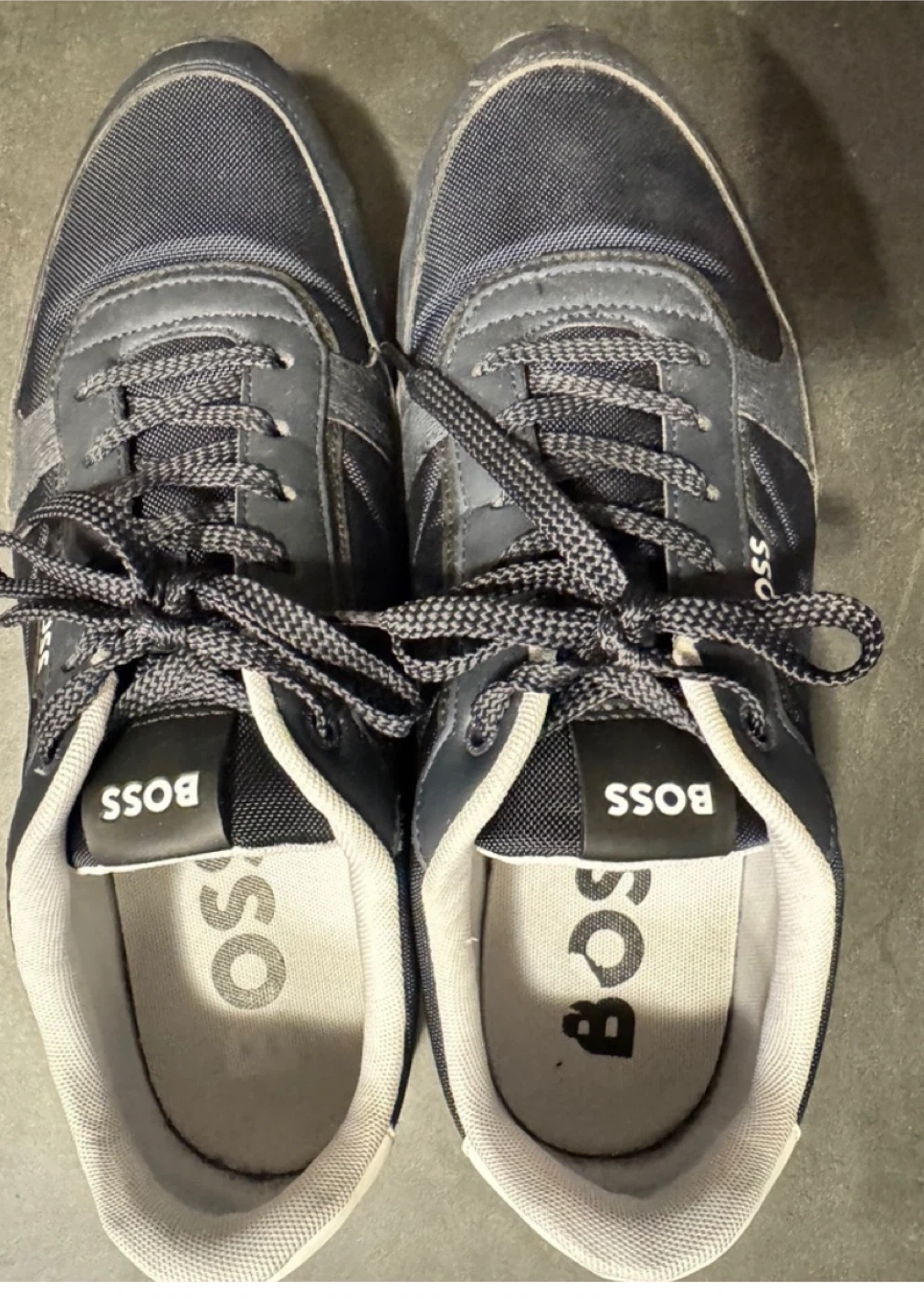 Selling a pair of Boss men's sneakers in size 43. They still have plenty of life left! The upper and lining are made of textile and other materials, and the sole is made of other materials as well.