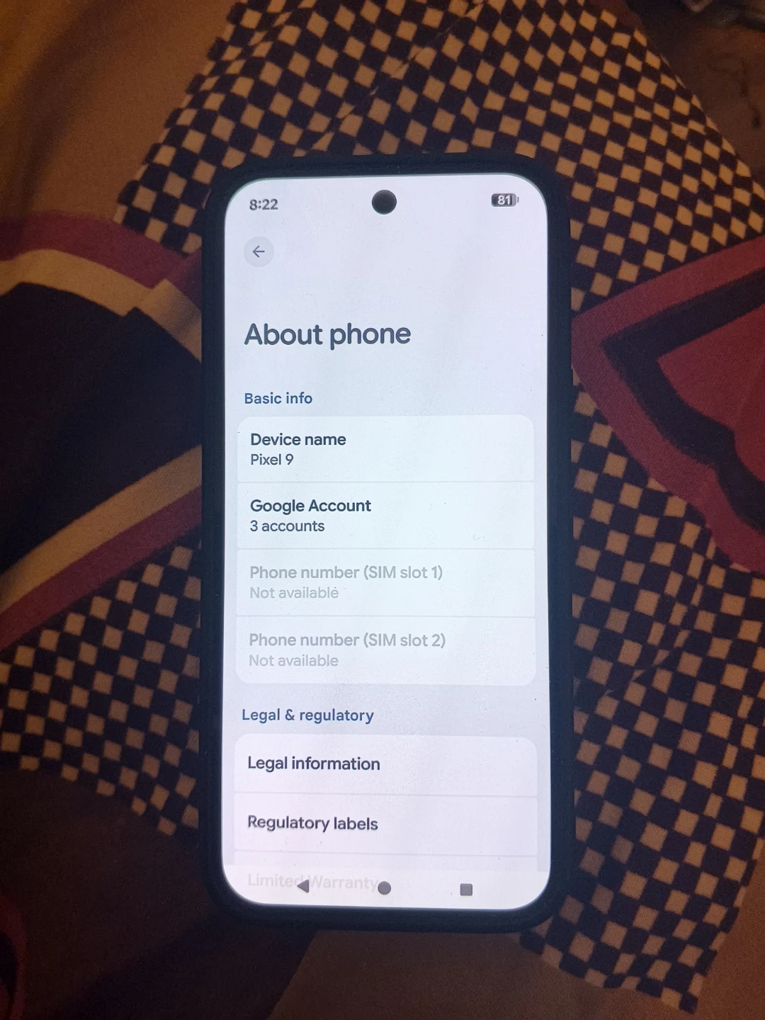 This is a Google Pixel 9 12gb smartphone. It has a black finish and normal battery health at 94% capacity. The device also comes with a black leather case.