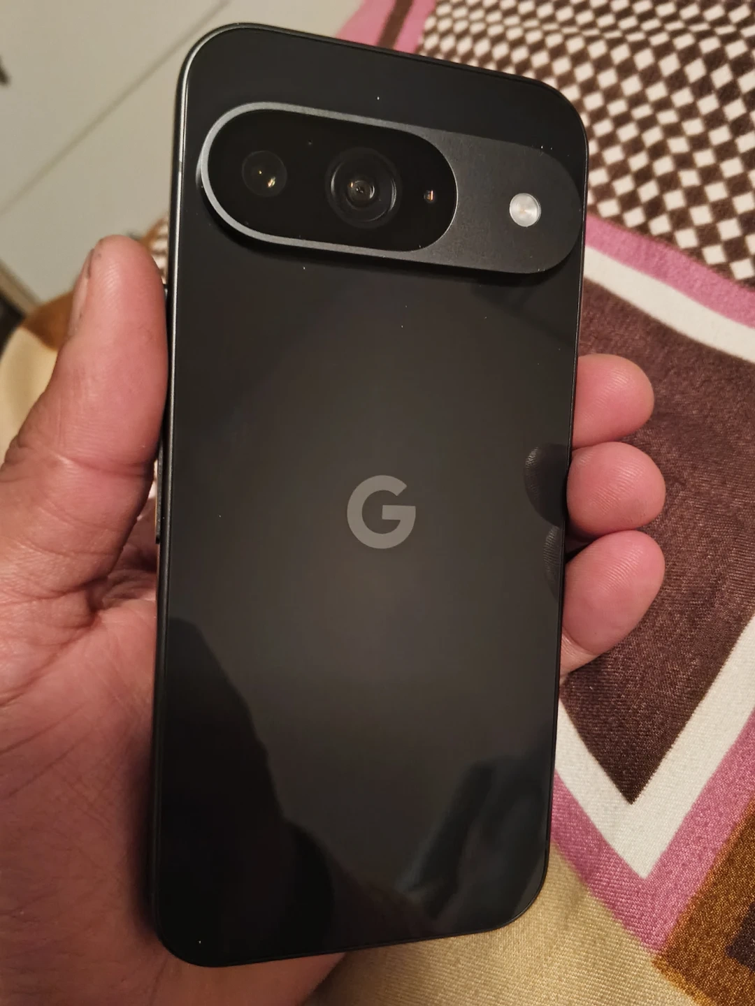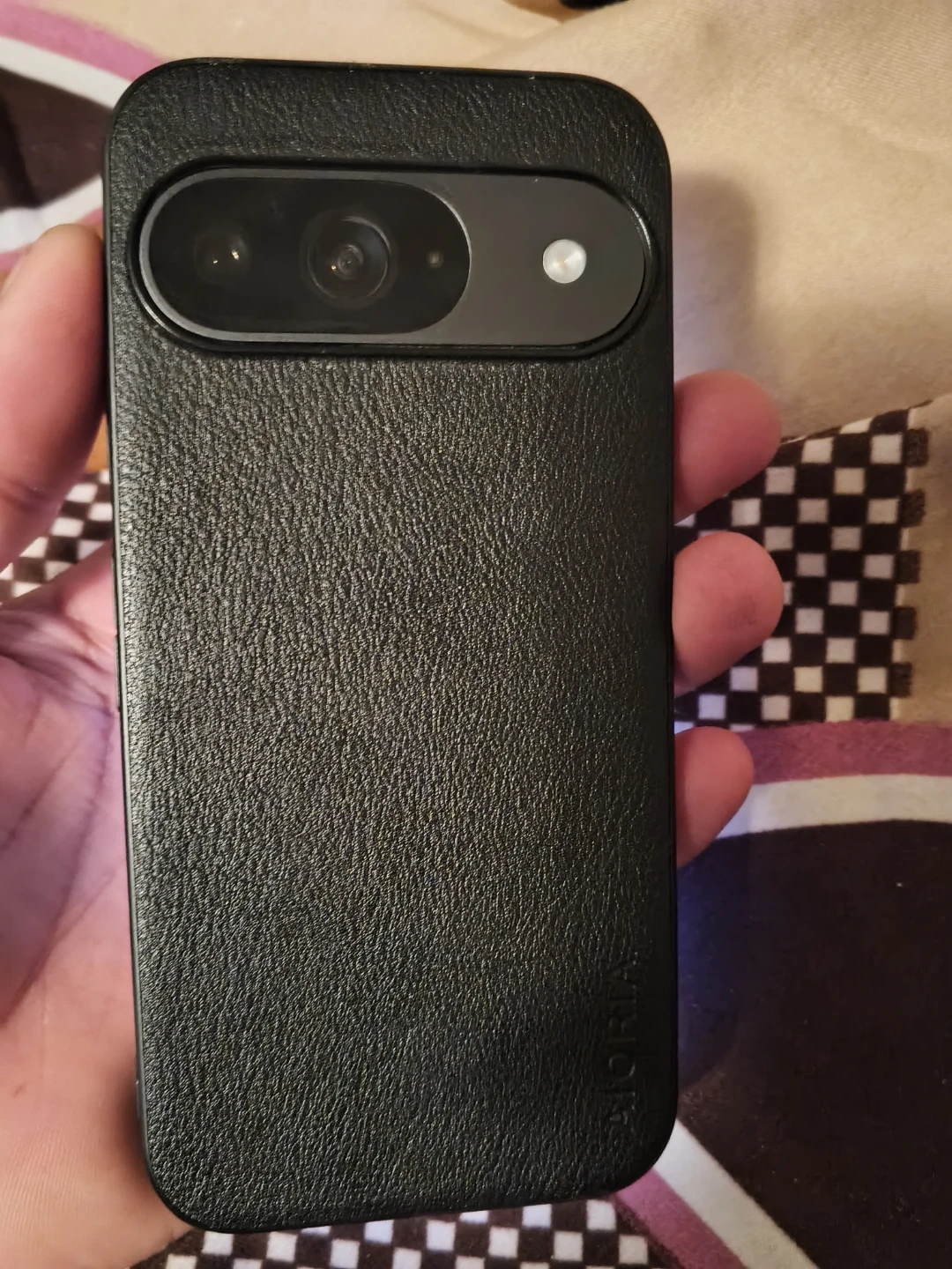 This is a Google Pixel 9 12gb smartphone. It has a black finish and normal battery health at 94% capacity. The device also comes with a black leather case.