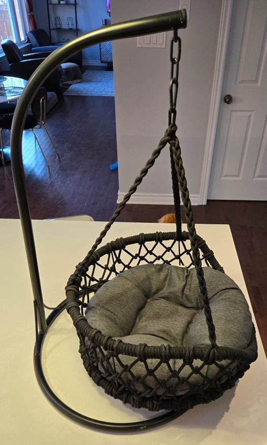 Buy & SellPet Hanging Chair Swing BedPet Hanging Chair Swing Bed$15Black metal stand. Grey cushion. Rope woven hanging chair. For small to medium sized pets. Excellent, like new condition.ConditionLike newWHERE TO MEETCryslerView MapSELLERverifiedMikeCrysler1336 reviews3 chats·2 favorites·73 viewsSEND CHAT TO SELLERHi Mike! I’m interested in your listing.Hi Mike! I’m interested in your listing.Get the Karrot app to chatSign In to chat