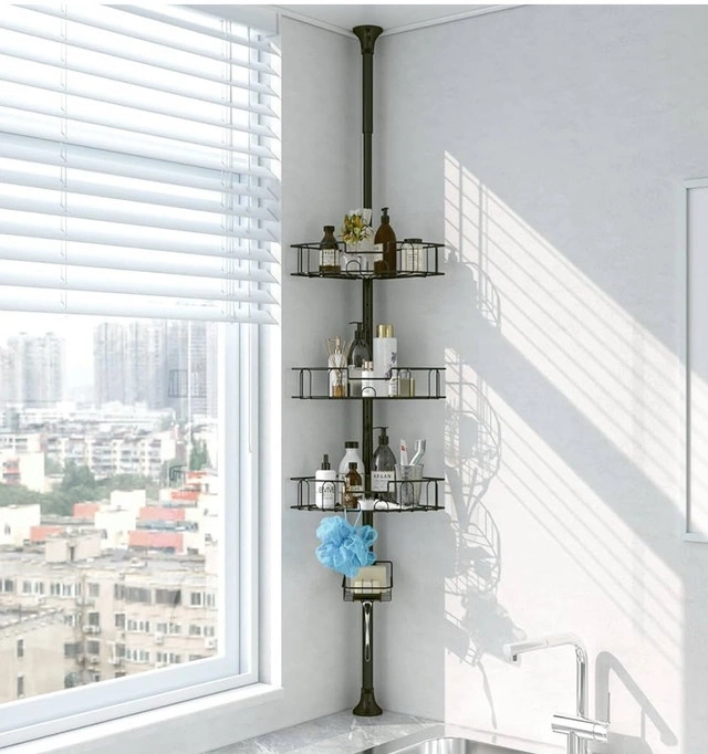 This new tension pole corner shower caddy features an oil-rubbed bronze finish and adjustable shelves, perfect for organizing your bath products. It fits neatly into any corner, providing convenient storage without taking up too much space.