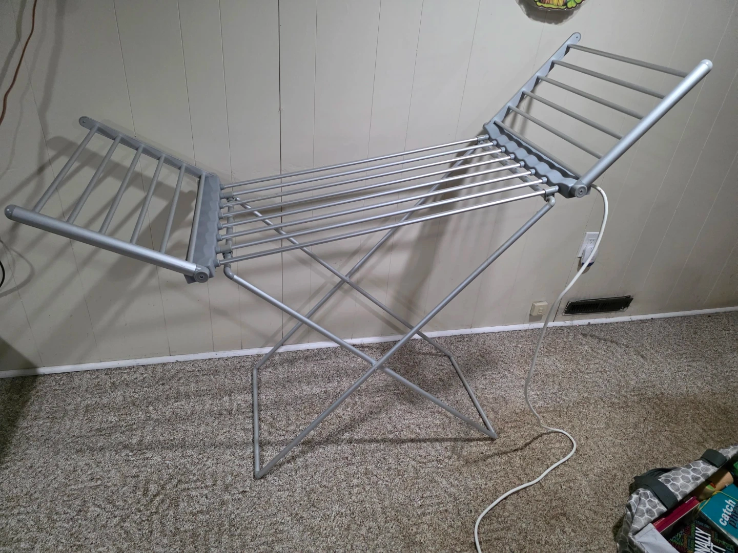 Buy & SellElectric Drying RackElectric Drying Rack$30This is a foldable electric drying rack. It's suitable for drying clothes indoors. The rack has multiple drying lines and a power cord with a switch.ConditionLike newWHERE TO MEETCheck LocationView MapSELLERverifiedTanyaMaidstone831 review0 chats·0 favorites·2 viewsSEND CHAT TO SELLERHi Tanya! I’m interested in your listing.Hi Tanya! I’m interested in your listing.Get the Karrot app to chatSign In to chat