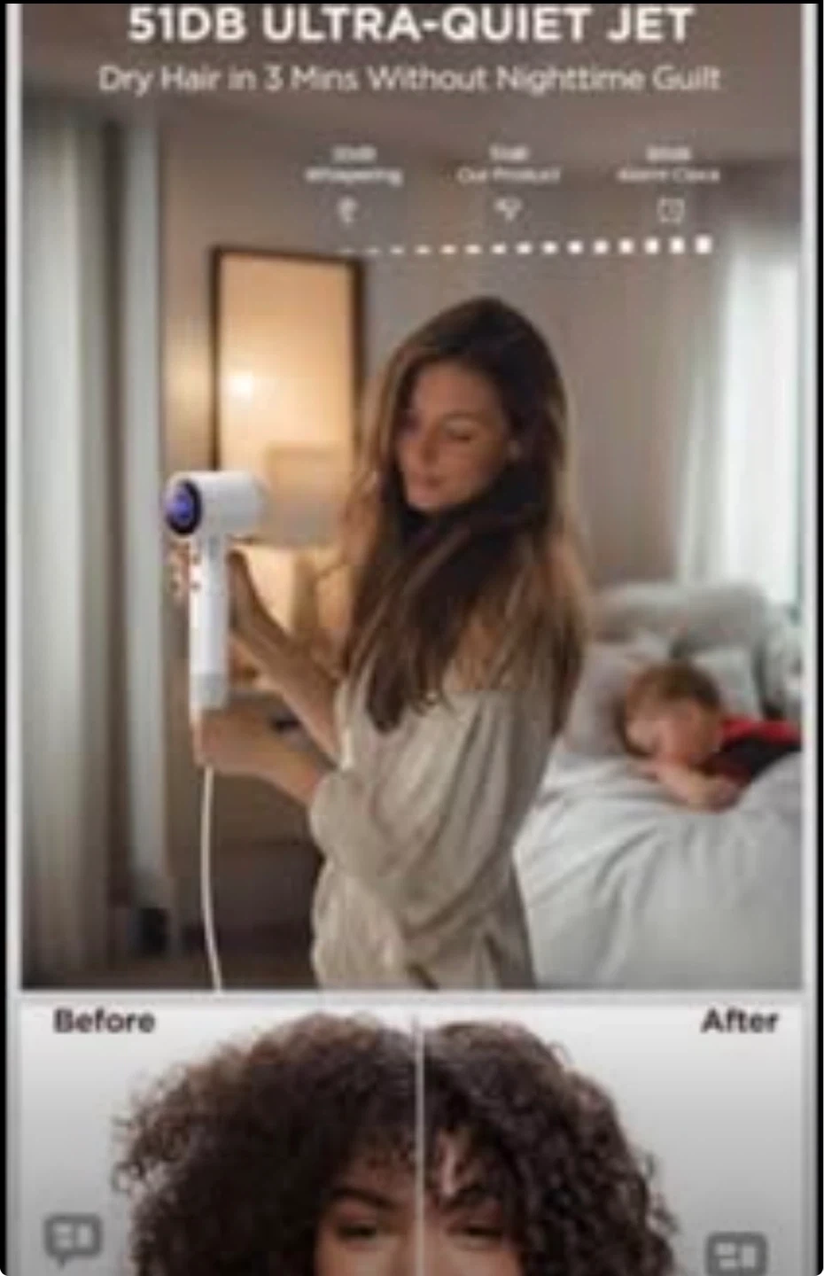 Cosy Companions Hair Dryer - Negative Ionic Blow Dryer with 150000 RPM High Speed Brushless Motor for Fast Drying, Low Noise, HD Display Hair Dryer with Diffuser and Nozzle, 5 Temps & 2 Speeds