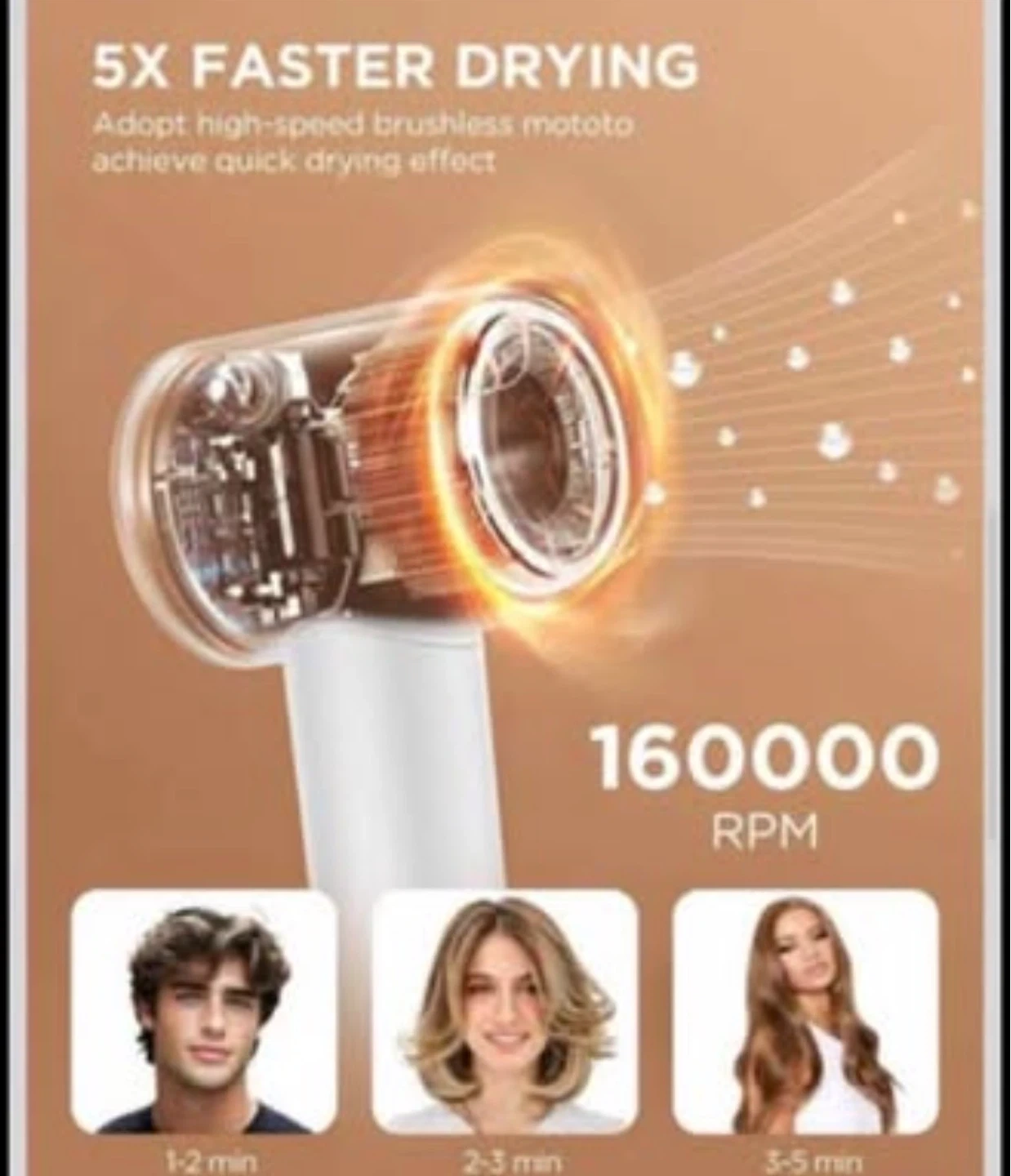 Cosy Companions Hair Dryer - Negative Ionic Blow Dryer with 150000 RPM High Speed Brushless Motor for Fast Drying, Low Noise, HD Display Hair Dryer with Diffuser and Nozzle, 5 Temps & 2 Speeds