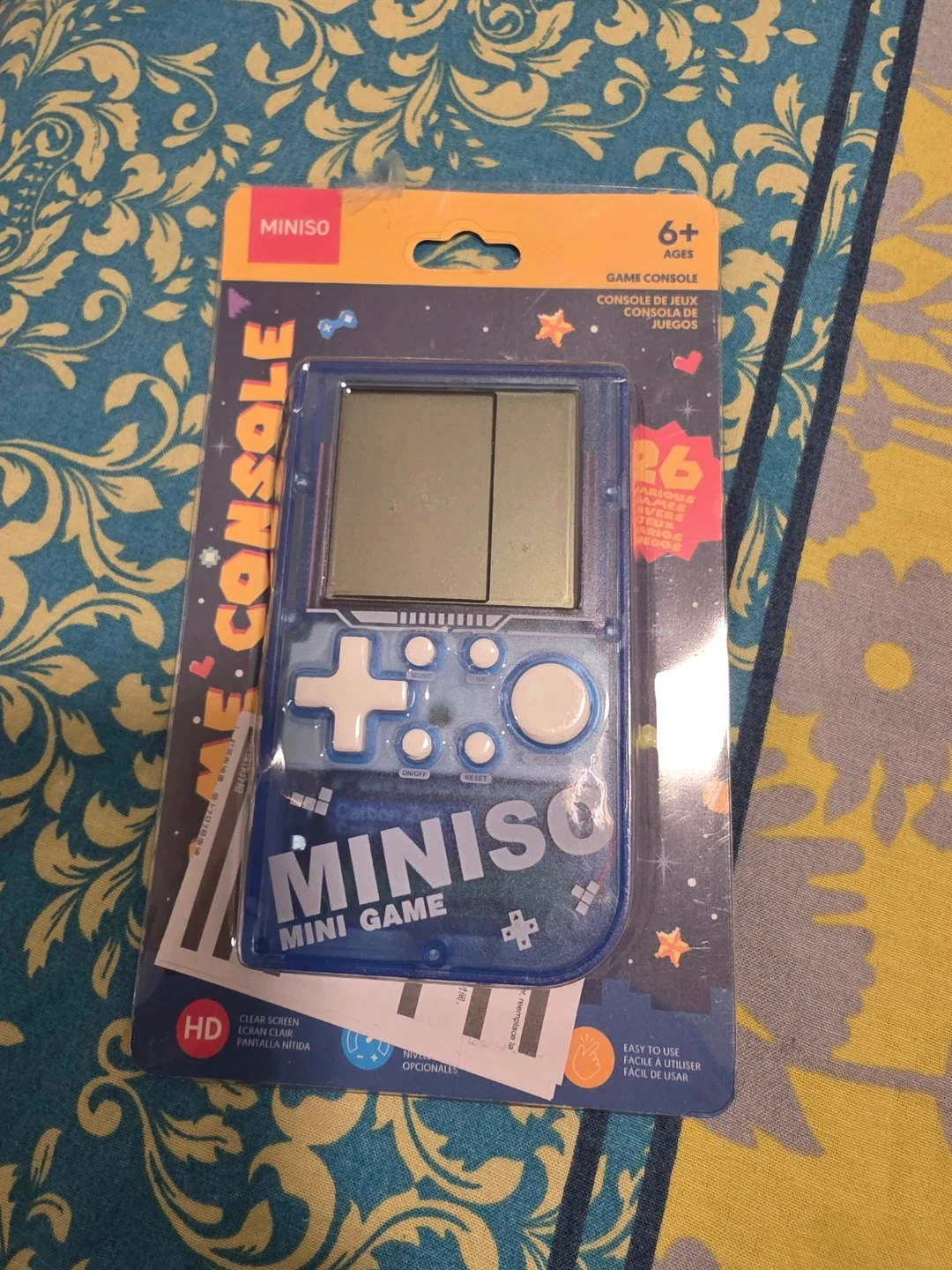 Selling a brand new Miniso Mini Game Console in blue! It's still in its original packaging and is suitable for ages 6+. It's easy to use and has a clear screen