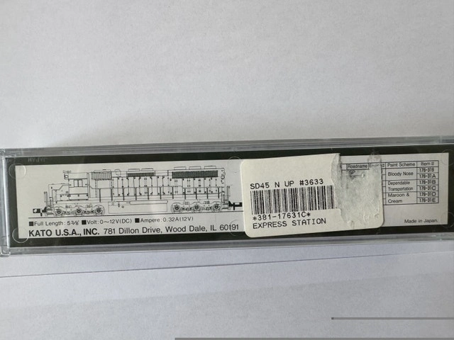 Buy & SellN Scale Kato EMD SD-45 UP 3605 for saleN Scale Kato EMD SD-45 UP 3605 for sale$120This N Scale Kato EMD SD-45 UP 3605 is 100% new, only used for a test run. You can pick it up at Markville Mall.WHERE TO MEETCheck LocationView MapSELLERWilliamWismer Commons100 reviews0 chats·0 favorites·0 viewsSEND CHAT TO SELLERHi William! I’m interested in your listing.Hi William! I’m interested in your listing.Get the Karrot app to chatSign In to chat