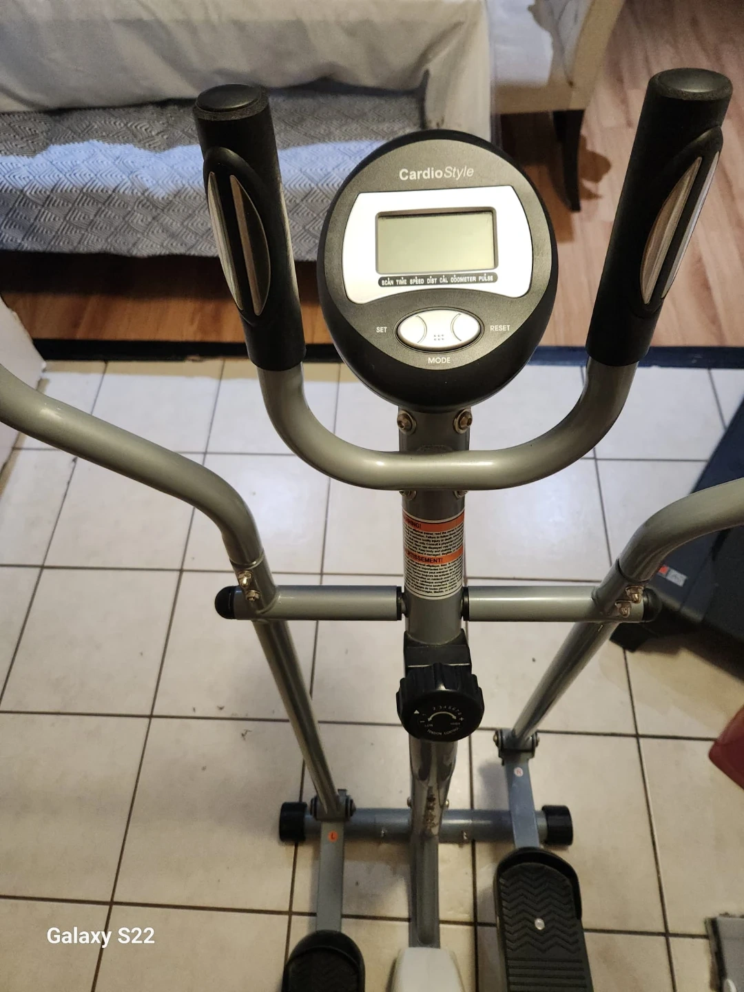 Compact elliptical trainer by CardioStyle. Features adjustable resistance for a customized workout. Digital display shows workout data.