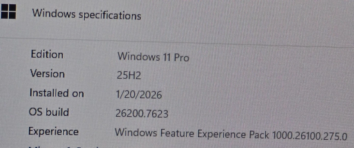 - Windows 11 Pro 25H2