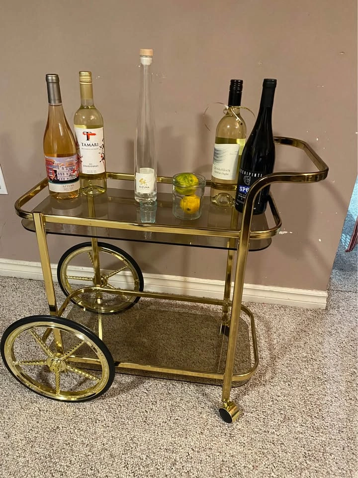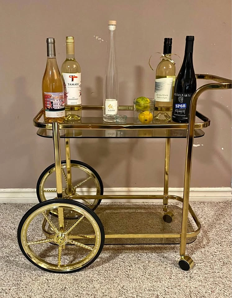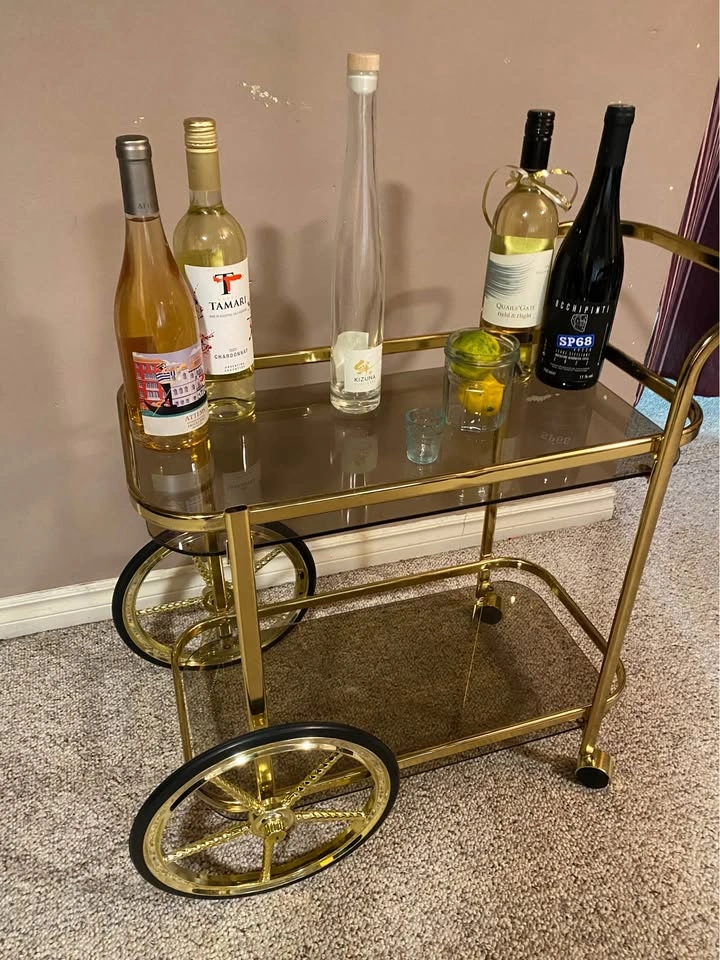 Golden Bar Cart with Wheels