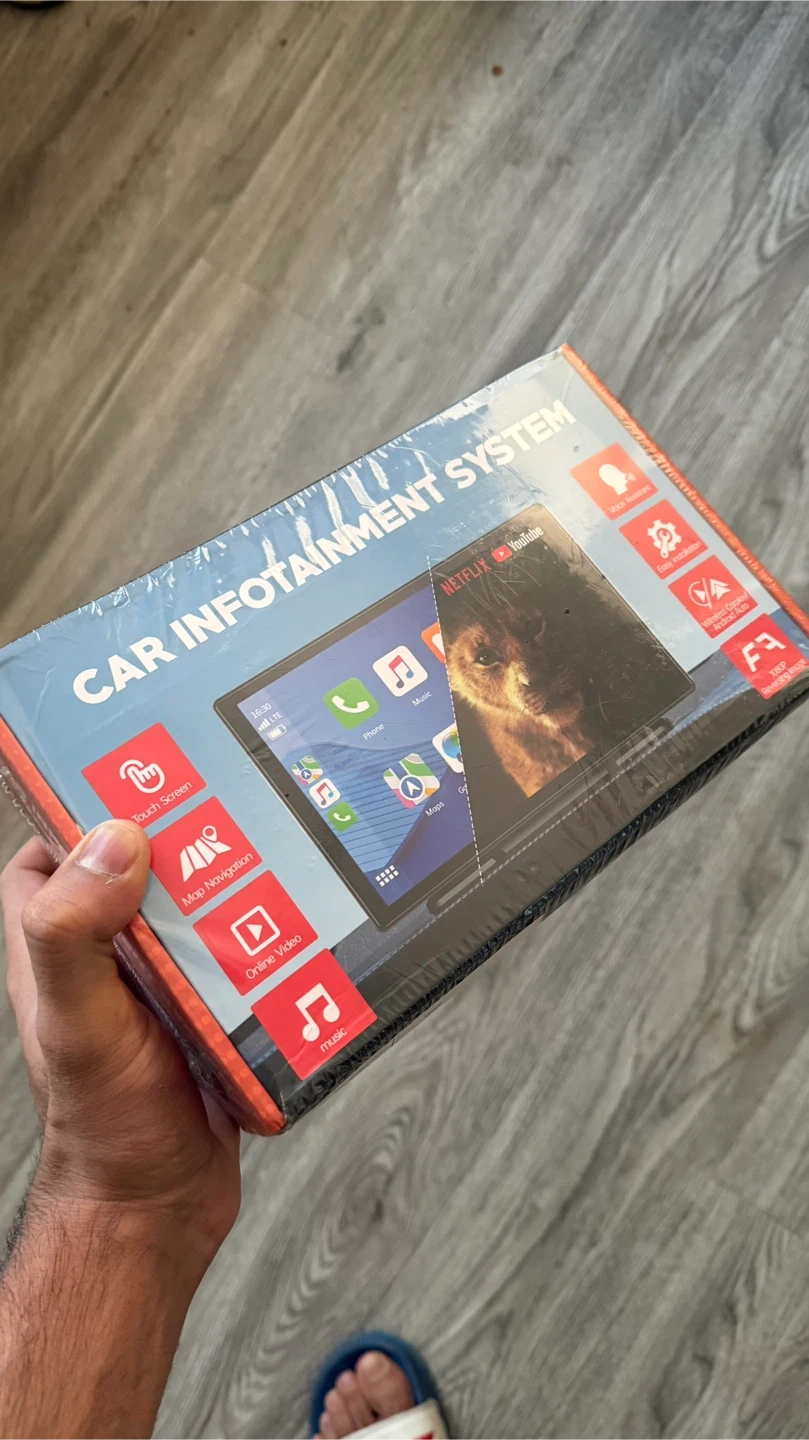 This car infotainment system has a touch screen and includes map navigation. It also supports online video and music playback. It comes with easy installation and wireless CarPlay/Android Auto functionality.
