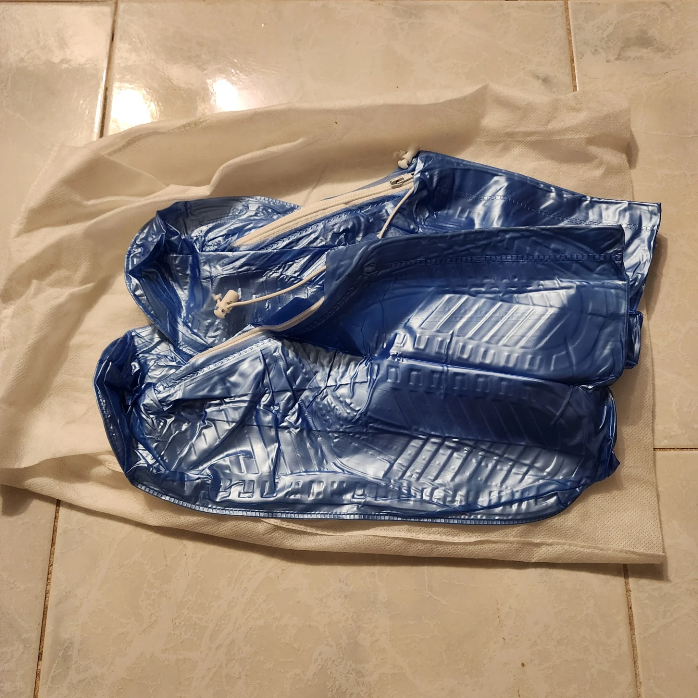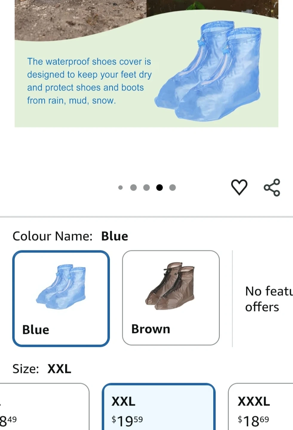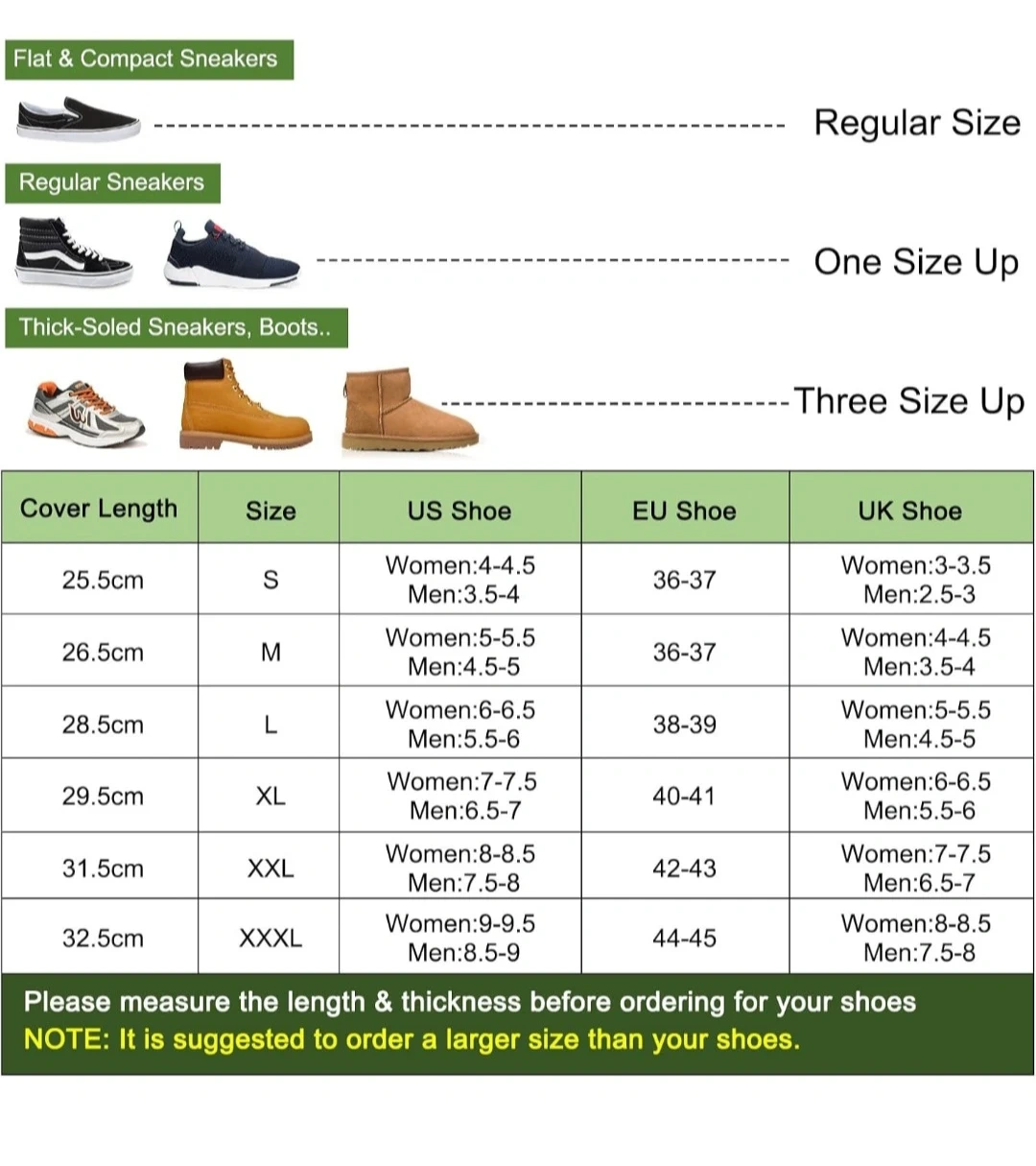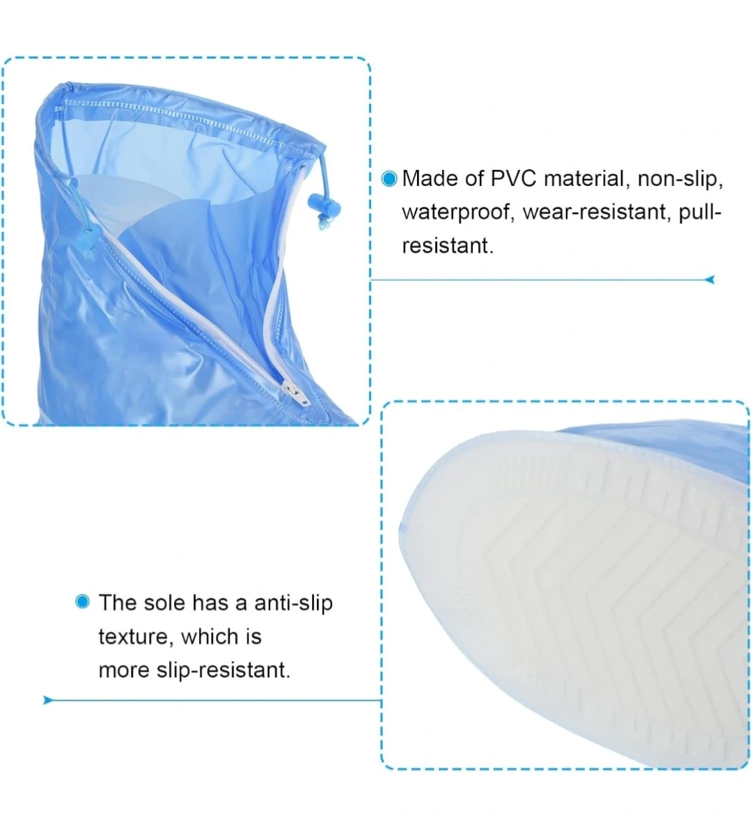 These shoe covers are made from waterproof PVC material. They're designed with a non-slip sole texture and a pull-resistant construction. The XXL size fits EU shoe sizes 42-43.