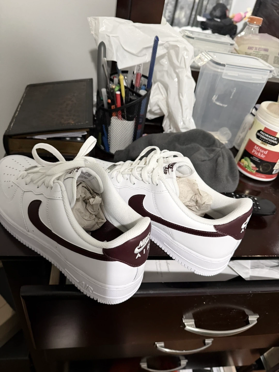 Nike Air Force 1 '07 White/Burgundy Sneakers