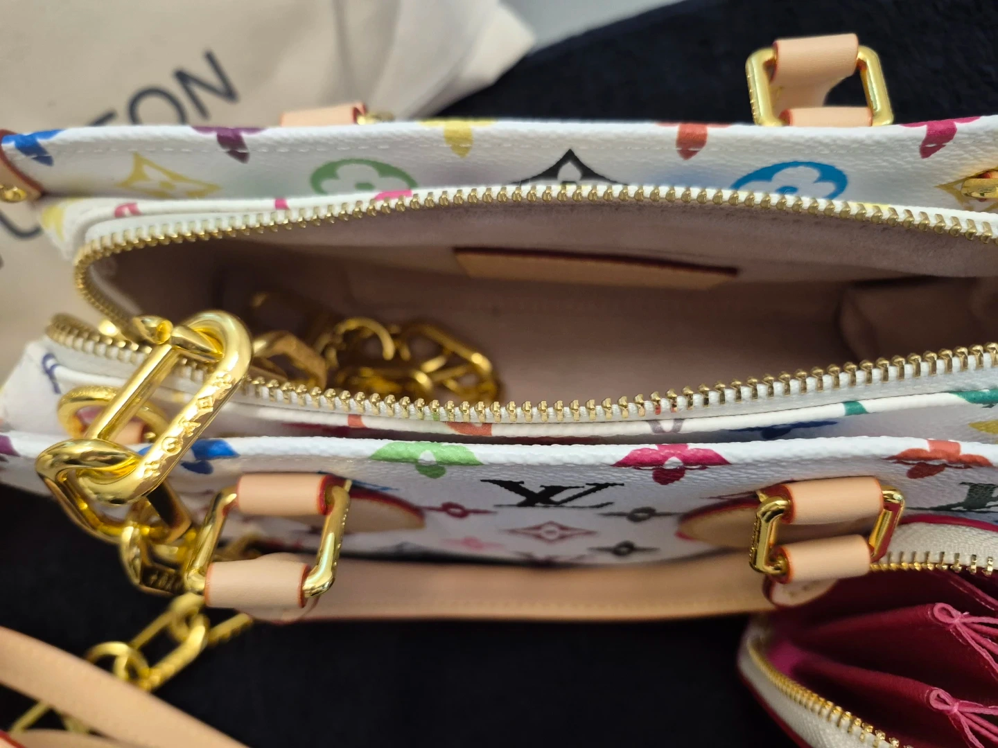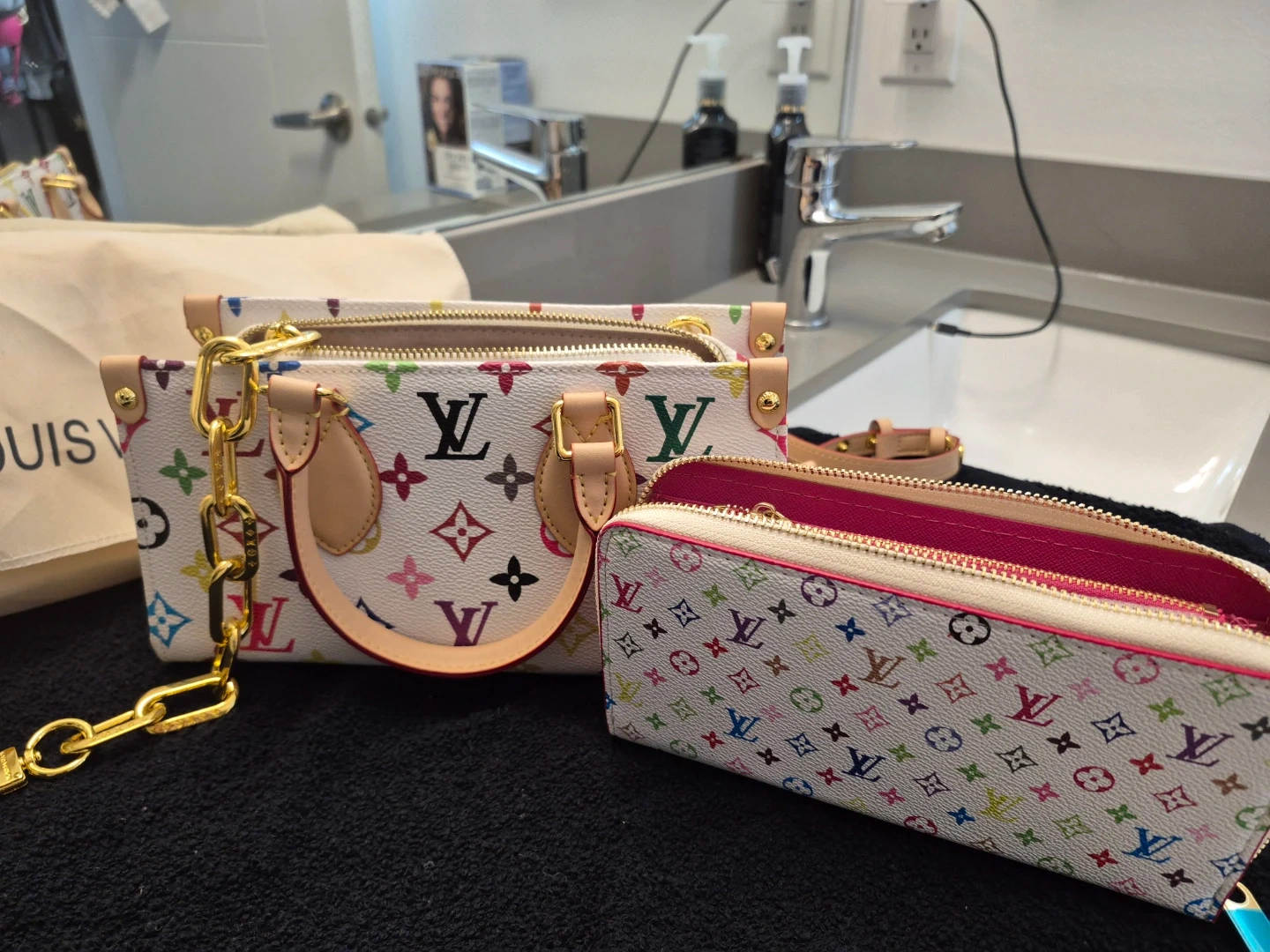 the multi-colour monogram print. It features a zip-around closure and gold-tone hardware. A matching pouch is included.