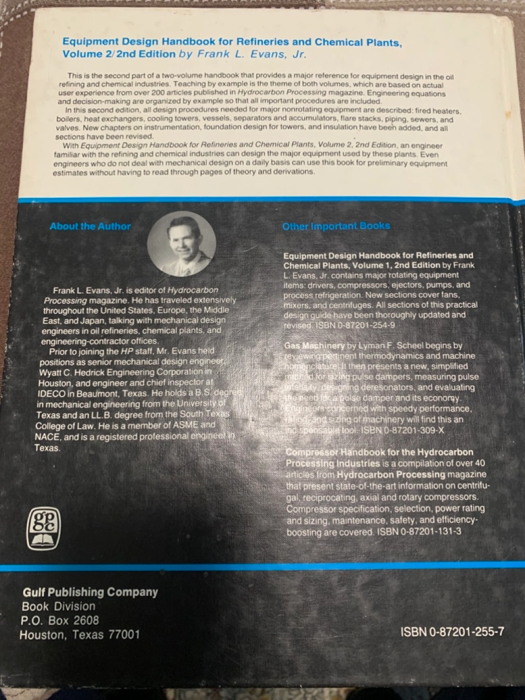 Second edition of a two-volume handbook. Major reference for equipment design in the oil refining and chemical process industries. Over 200 articles published in Hydrocarbon Processing magazine. Covers design equations and practical experience from designing major processing equipment. Includes fired heaters, boilers, heat exchangers, cooling towers, foundation design for towers, and insulation.