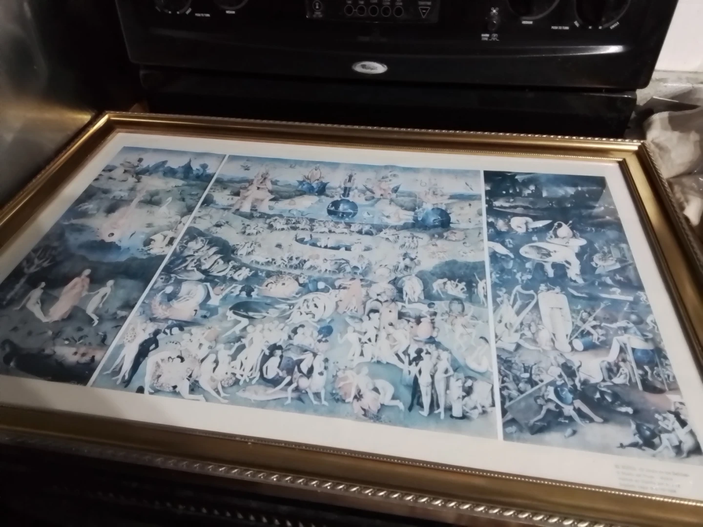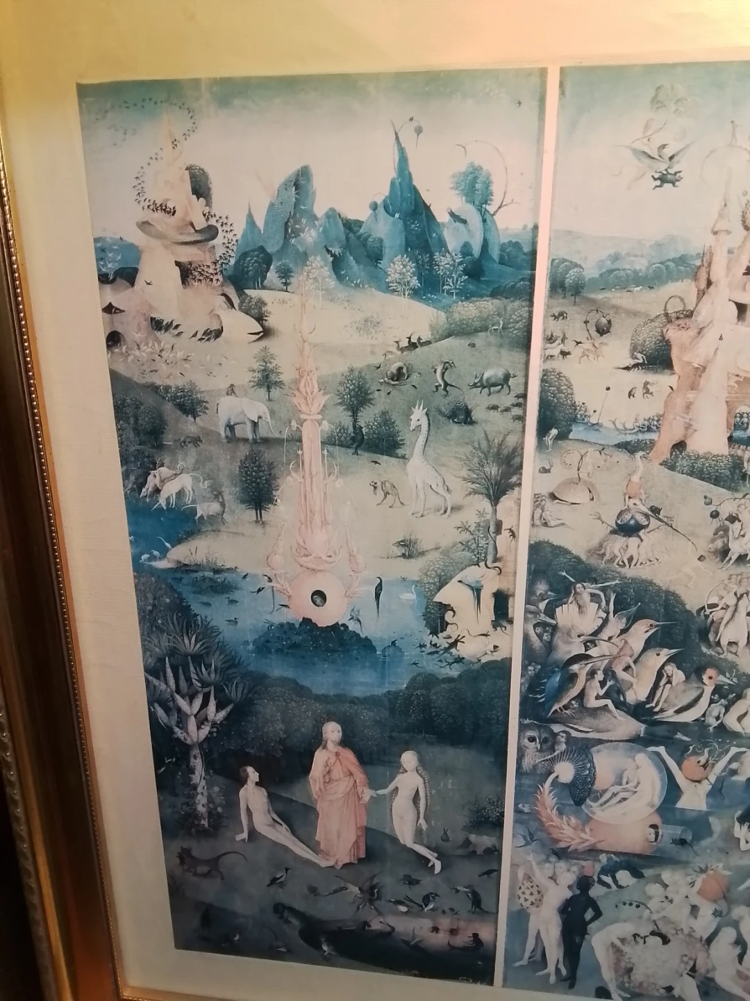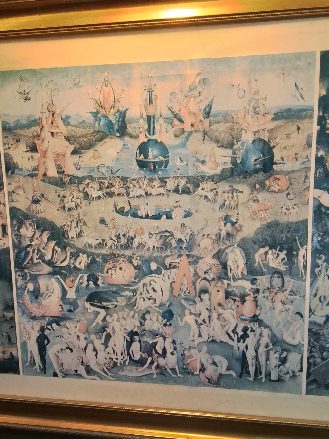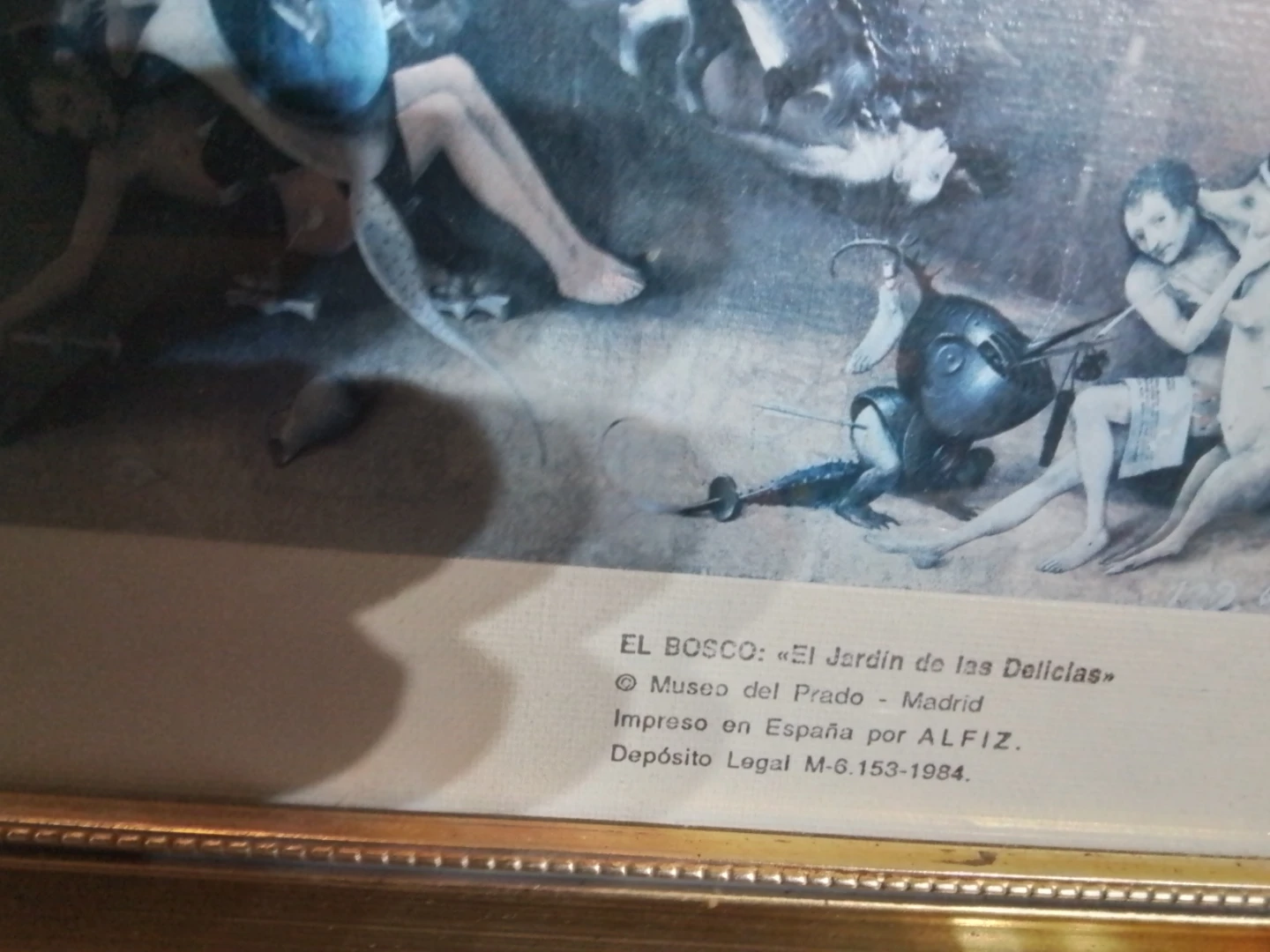 Framed print of El Bosco's "The Garden of Delights". Printed in Spain by ALF.IZ. Legal Deposit M-6.153-1984.