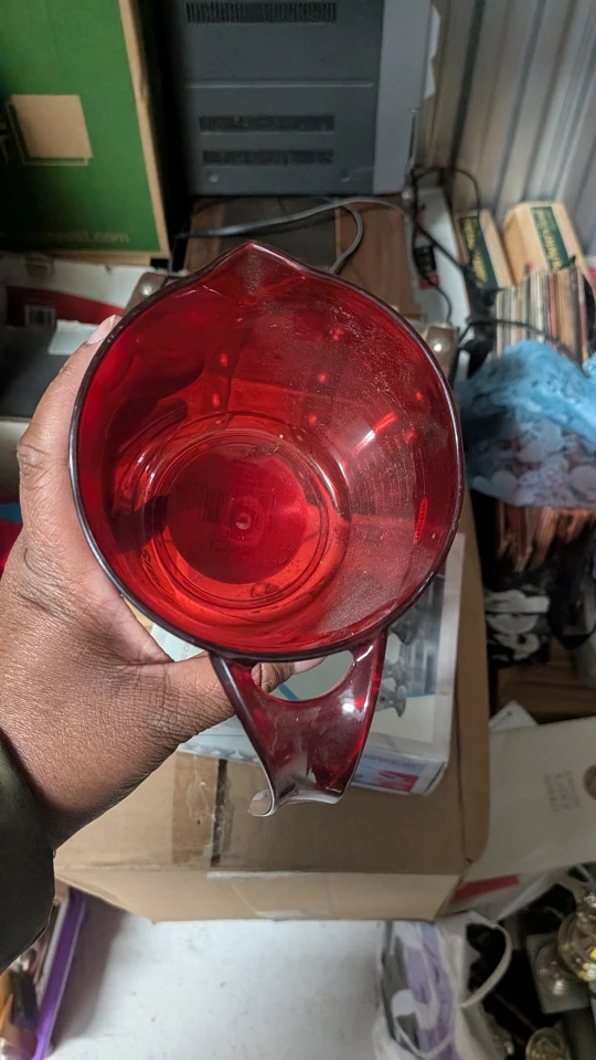 I'm giving away a red measuring cup that can hold up to 2 cups. It also has metric measurements on the side. It's in good condition and ready for a new home!