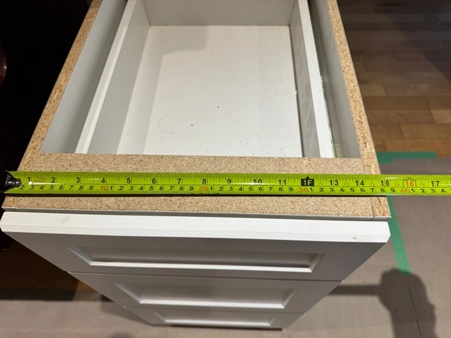 Drawers are soft-close. Drawer pulls and countertop not included.