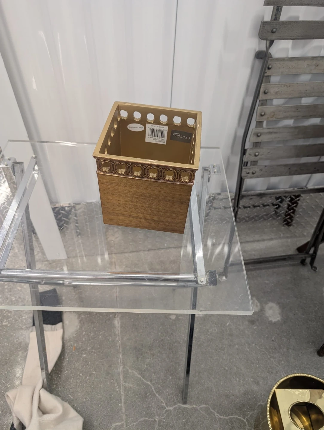 Gold Metal Tissue Box Cover and Decorative Waste Baskets