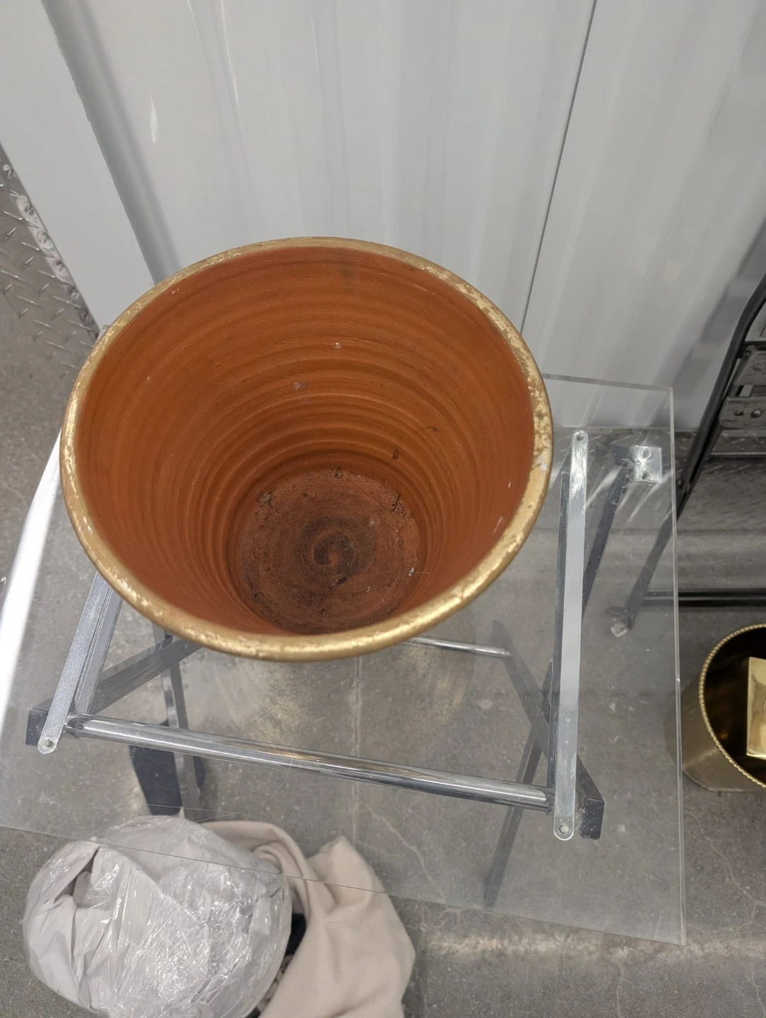 This set includes a gold metal tissue box cover and two decorative waste baskets. One waste basket is a polished brass finish and the other is a textured gold finish with ornate detailing. They're great for adding a touch of elegance to any room!