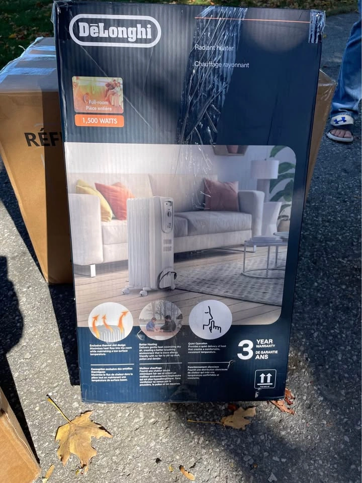 Brand new, retails for $139. Simple Controls allow you to easily adjust power level and temperature. Exclusive thermal slot design maximizes heat flow into the room while maintaining a low surface temperature. Better Heating- delivers gentle heat minimizing dry air,creating a better breathing environment that is more allergy friendly with no fan to stir up dust, pollen and dander. Integrated handle and control panel allow you to easily operate and relocate your heater during and after use. No Installation Required: A comfort hold handle paired with exclusive smart snap wheels, built-in for convenience, provide out-of-the-box easy movement from room to room as needed. 1500 watts of Long lasting, quiet heat for small to medium spaces. Pick up in Greenbank, check out my other listings