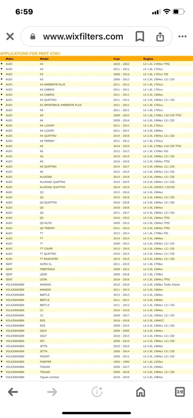 28Oil / Lube Filter for Audi / Volkswagen, see application guide in pics. Asking $15