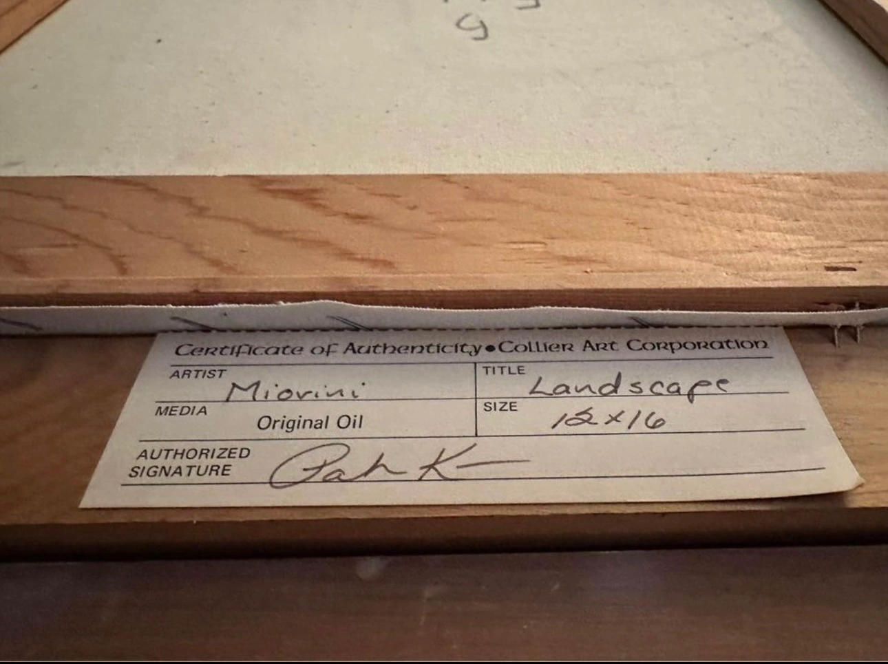 Oil painting for sale. Original frame. Certificate attached to the back.