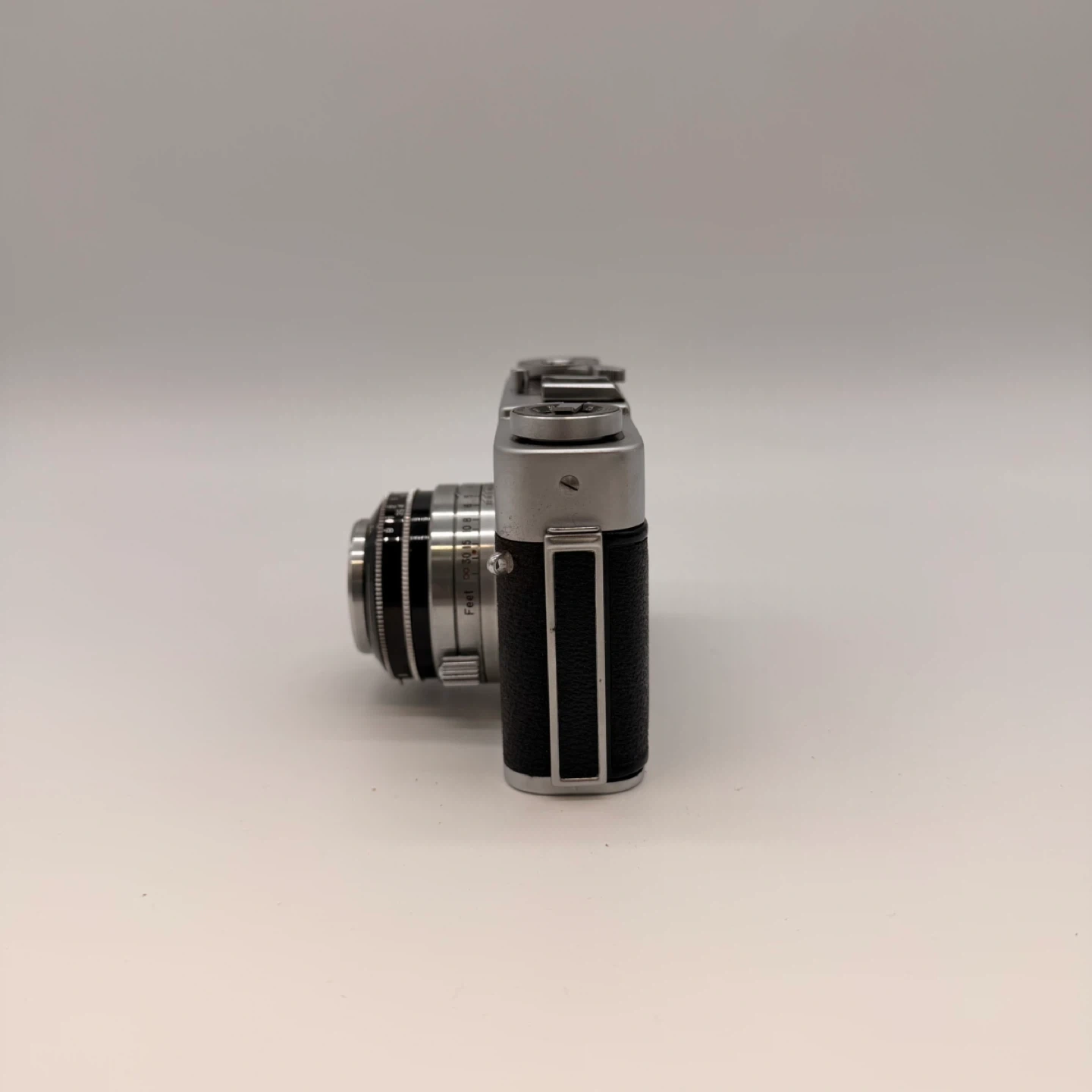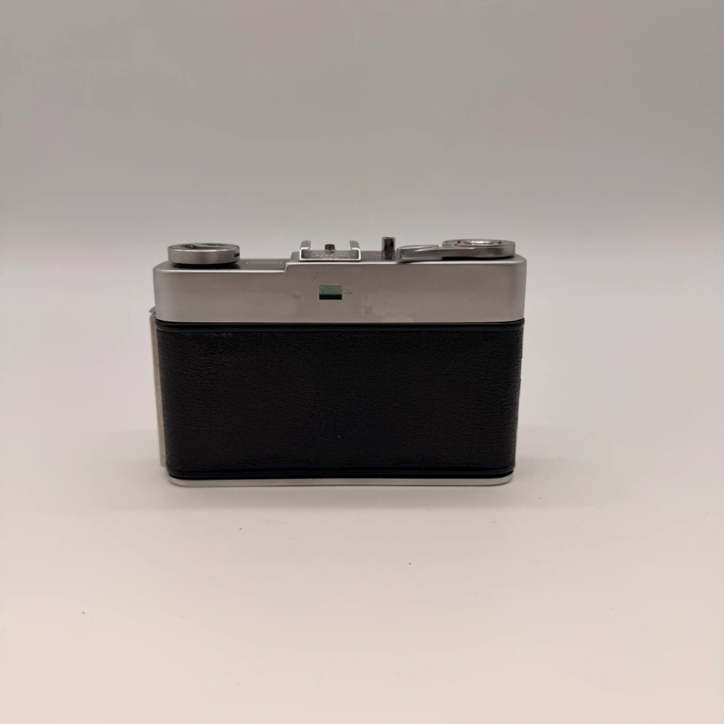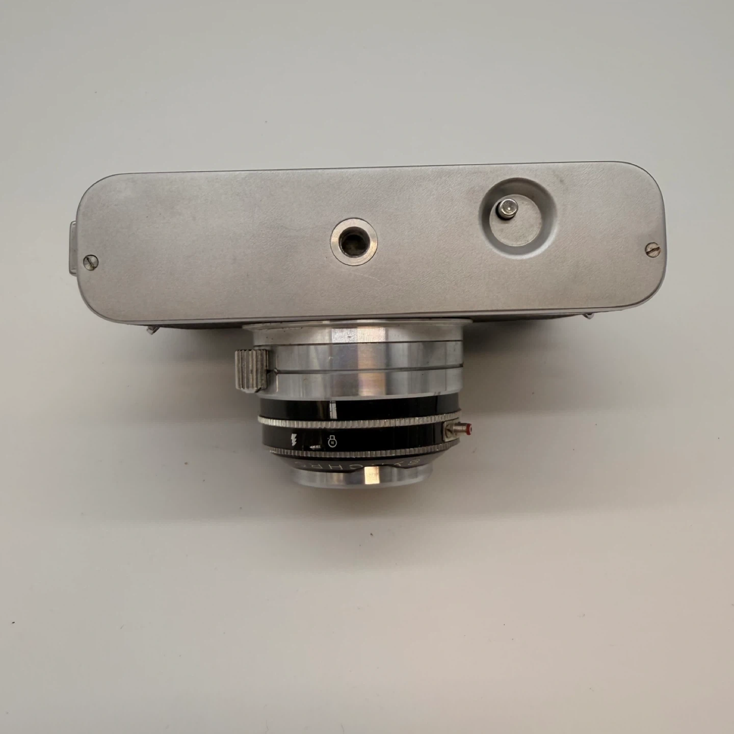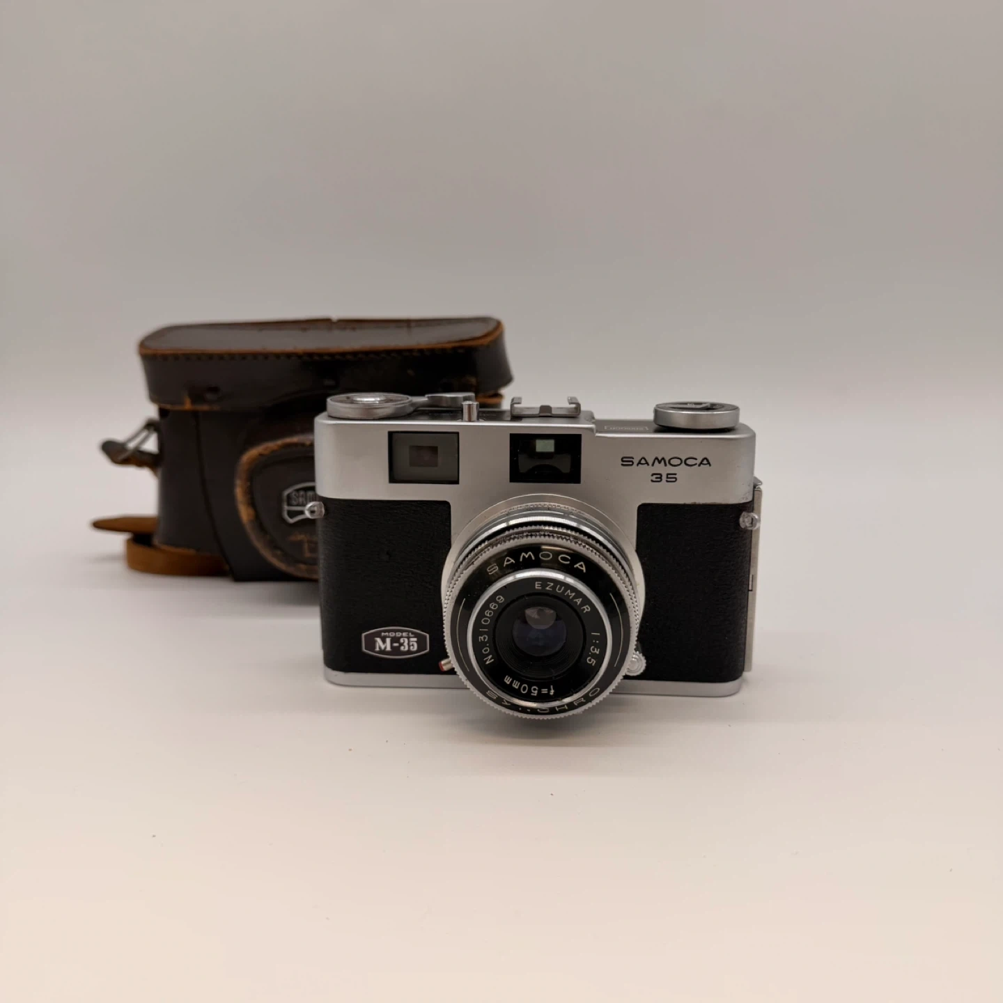 This classic compact camera features the original Samoca Ezumar 50mm f/3.5 lens and a beautiful metal body with black leatherette covering.