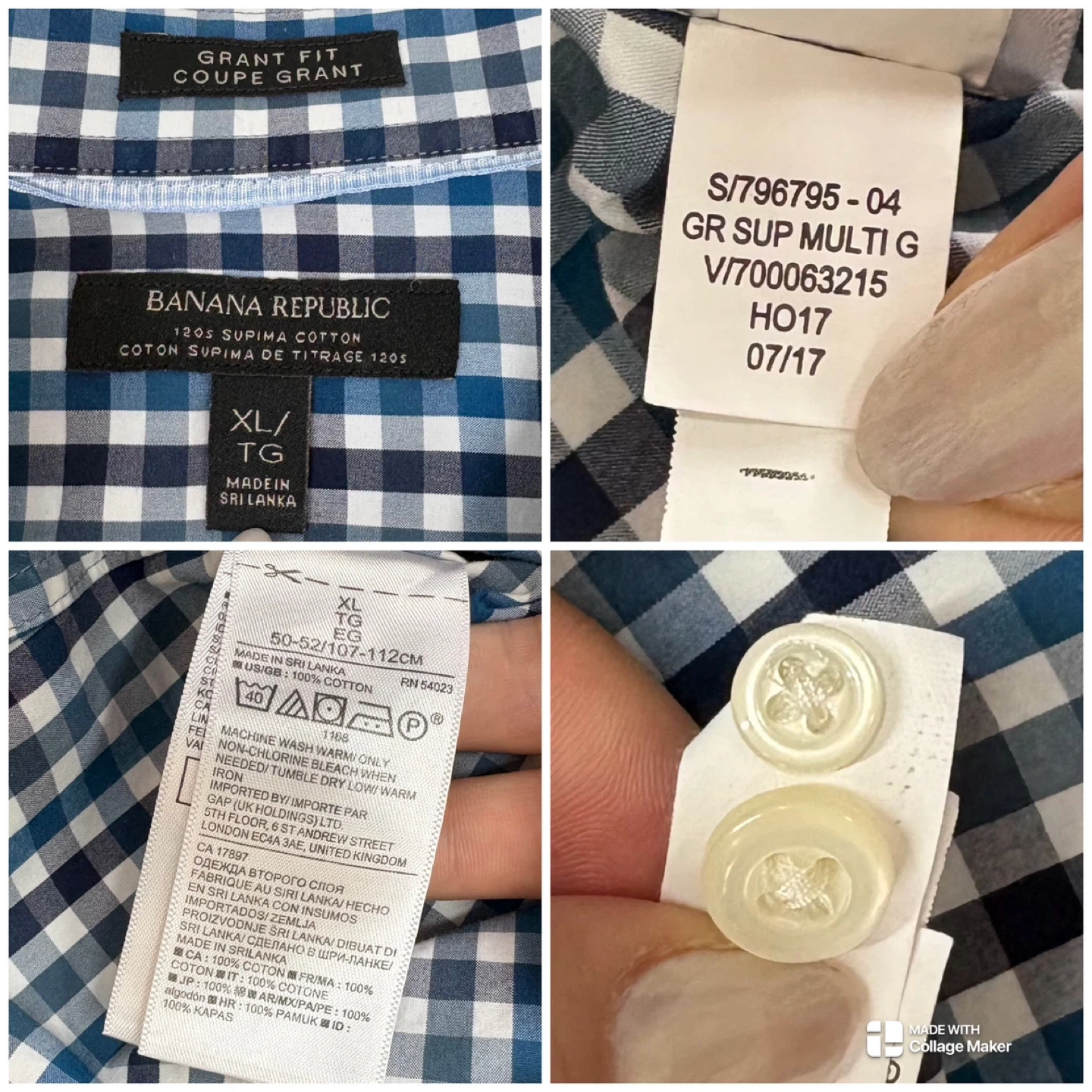 Banana Republic, Men's Fashion, Gingham, Button Down, Supima Cotton, Grant Fit, Business Casual, Professional, Blue Shirt, XL