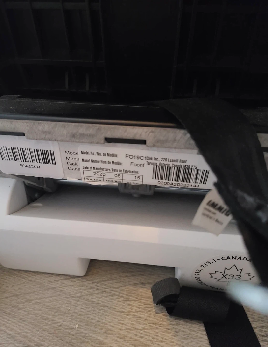 Clek Foonf car seat in grey. Manufactured in 2020.