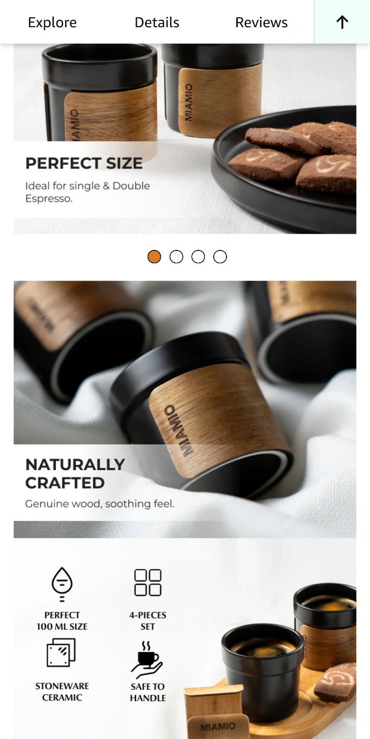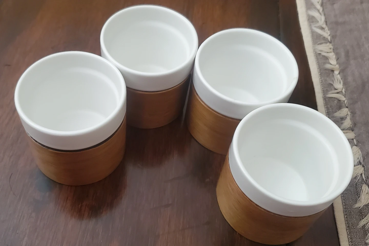 MIAMIO Espresso Cups Set of 4 - 100 ml Ceramic with Wood