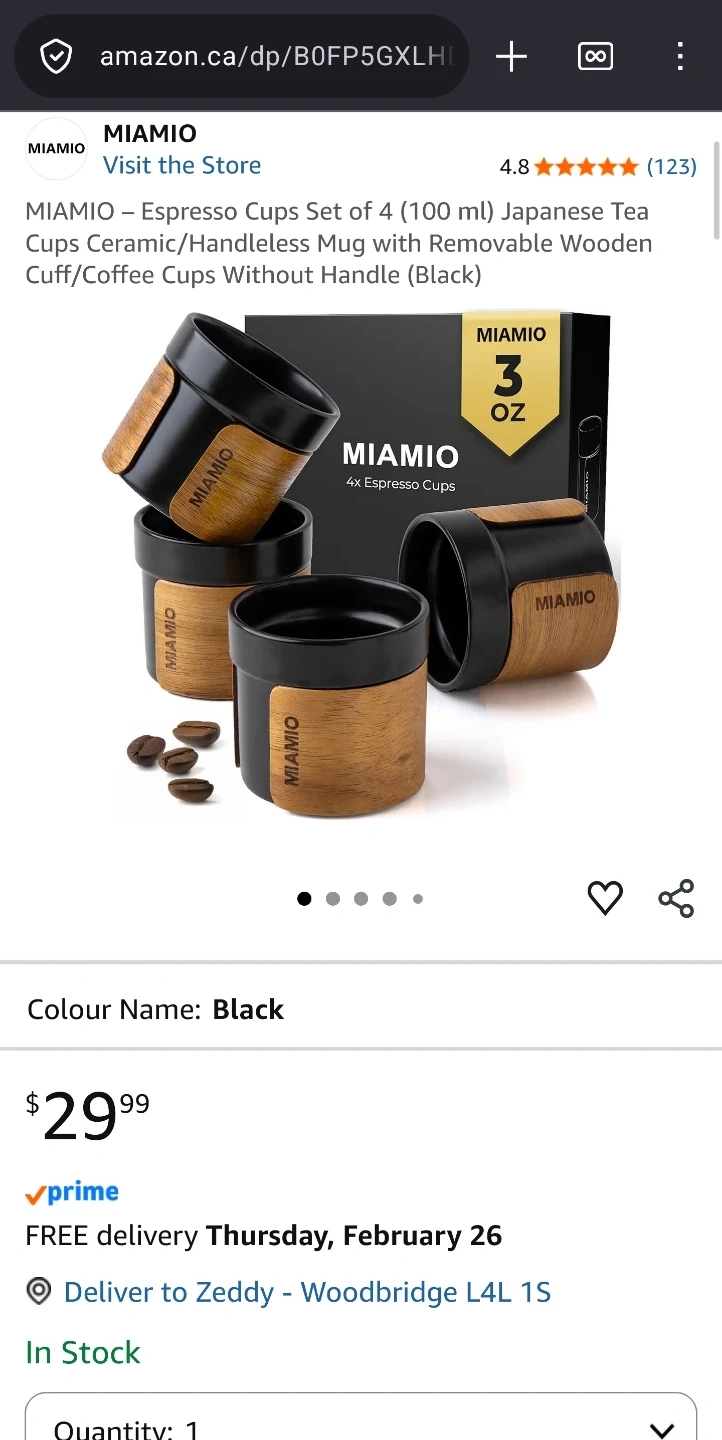 Set of 4 MIAMIO espresso cups in stoneware ceramic with removable wooden cuffs. Each cup holds 100 ml and is 3 oz. These cups are safe to handle and have a simple, clean design.