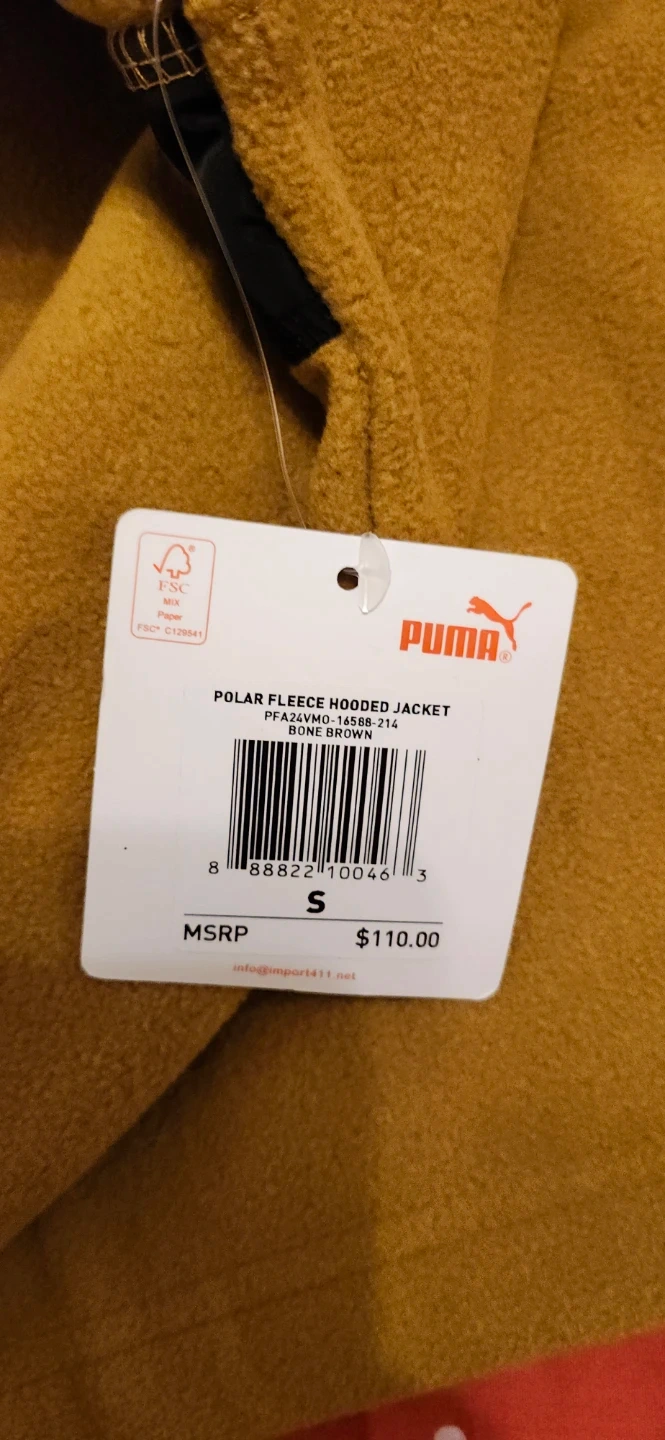 (NEW) Puma Polar Fleece Hooded Jacket - Bone Brown - Size S