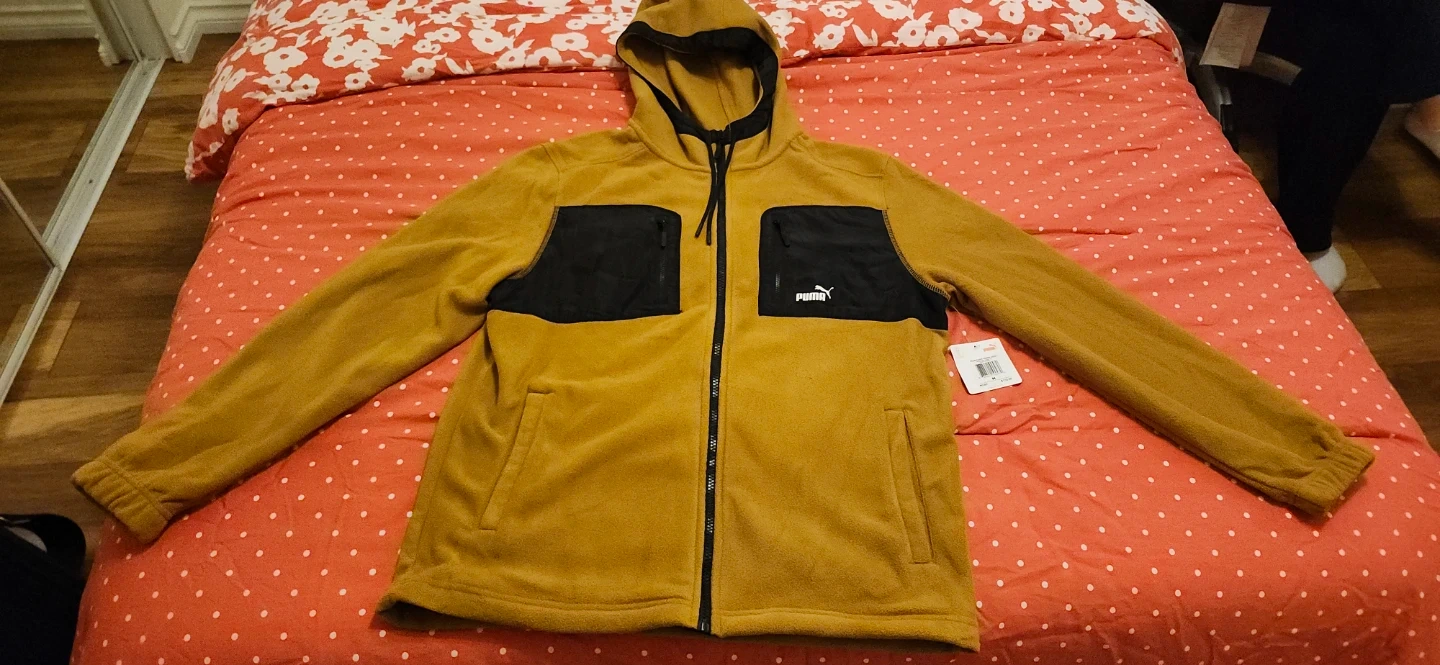(NEW) Puma Polar Fleece Hooded Jacket - Bone Brown - Size S