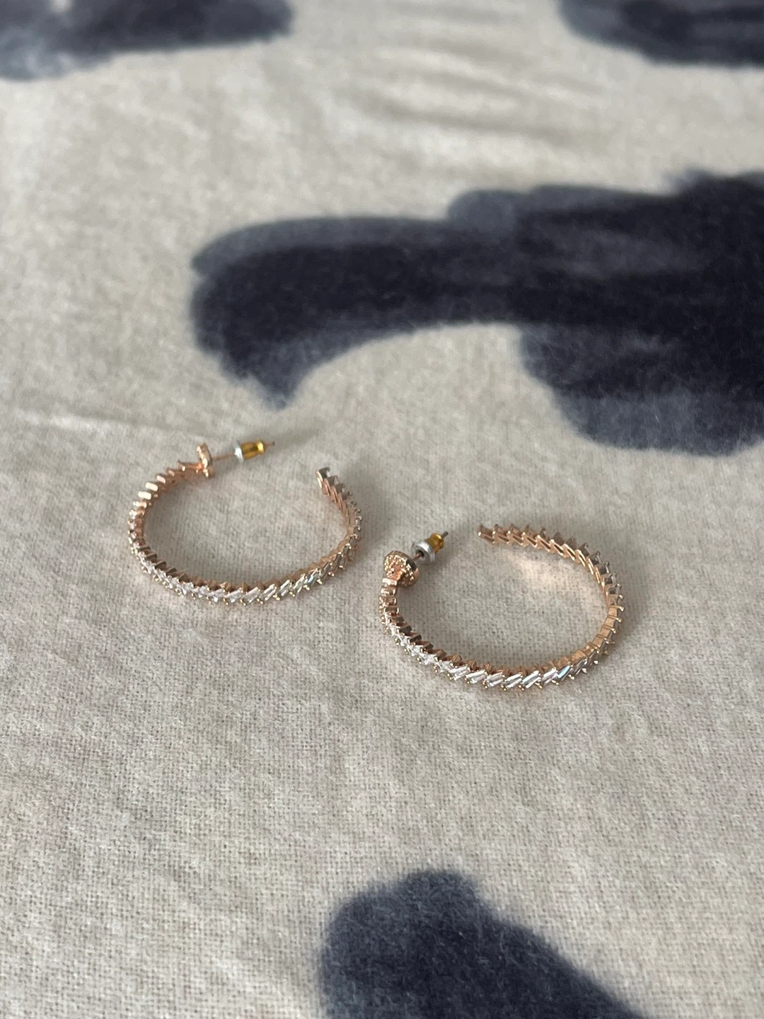 Rose Gold Hoop Earrings with baguette cut crystals/Rhinestones