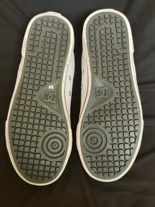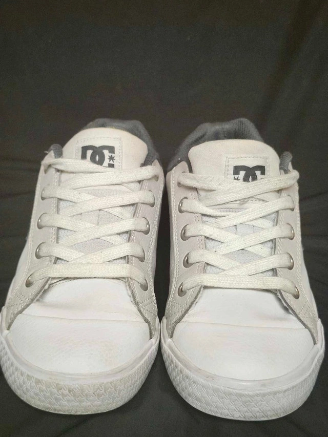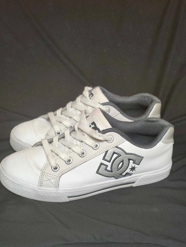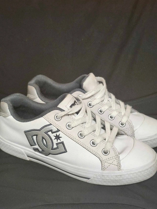 These are a pair of DC Chelsea SE women's skate shoes in a size 6.5, perfect for hitting the streets or adding a casual touch to your outfit. Being in used condition, they have a story to tell and are ready for new adventures. Brand: DC, Model: Chelsea SE, Size: Women's 6.5. Similar shoes usually sell for around $30-$60 CAD. Priced to sell. If the ad's still up, yes, they're still available! Cash accepted.