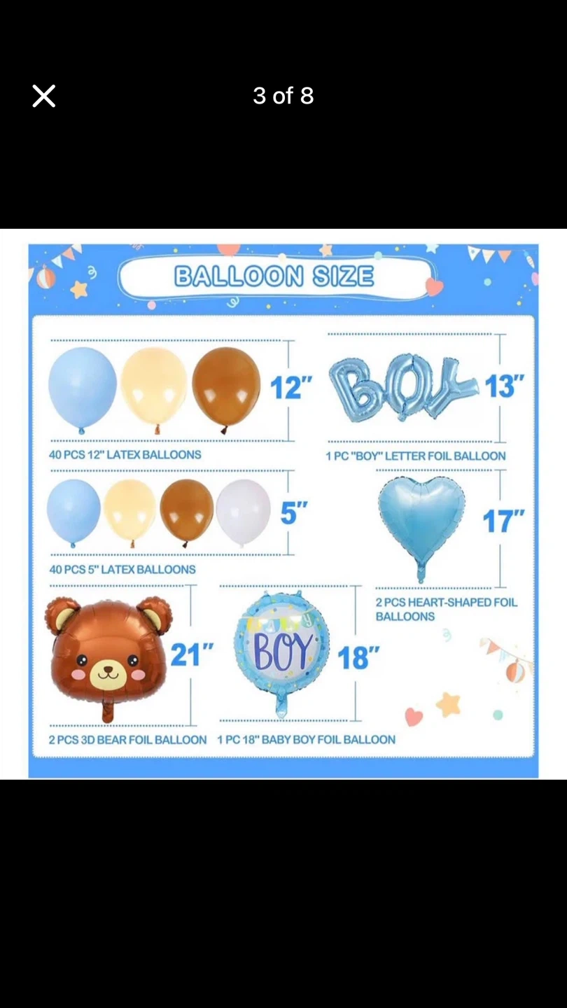 This "It's a Boy" party pack includes 116 pieces for your baby shower decorations. It comes with various balloons, a banner, stickers, a sash, a badge, cake toppers, and decorative blocks. A tablecloth and backdrop are also included.