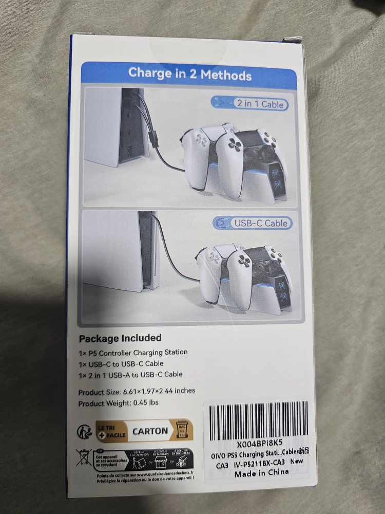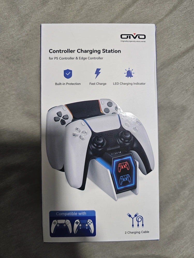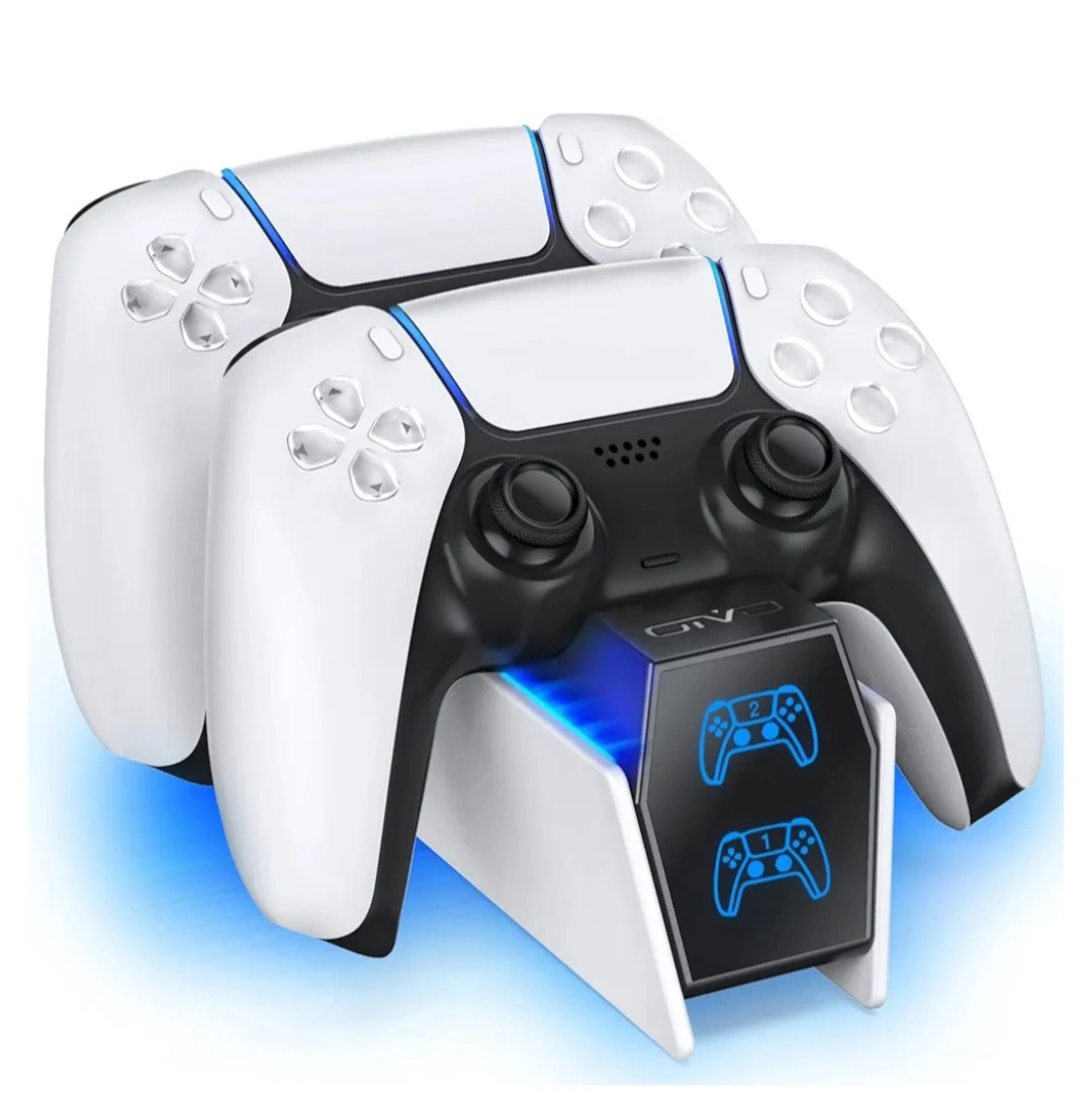 44Dual controller charging station for PS5 controllers. Includes two charging cables. LED charging indicator. Fast charge.