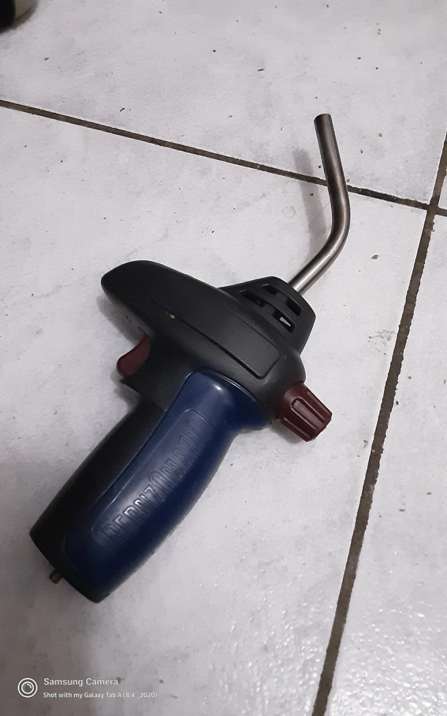 This Bernzomatic torch features a trigger start for easy ignition. It has a comfortable blue grip and a metal nozzle. It's great for various household tasks requiring a flame.