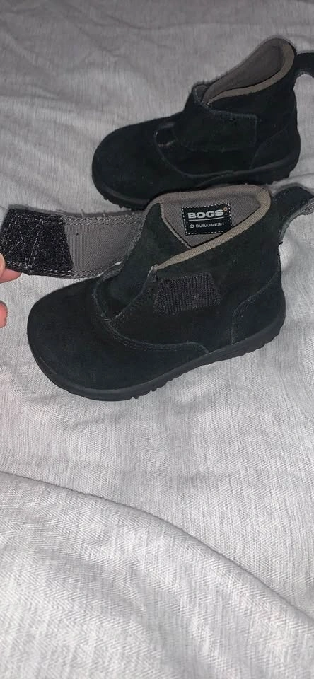 Gently used BOGS black boots. Suede material with velcro closures and rubber soles. Great for little ones. Smoke and pet free home. Pick up in Charleswood.