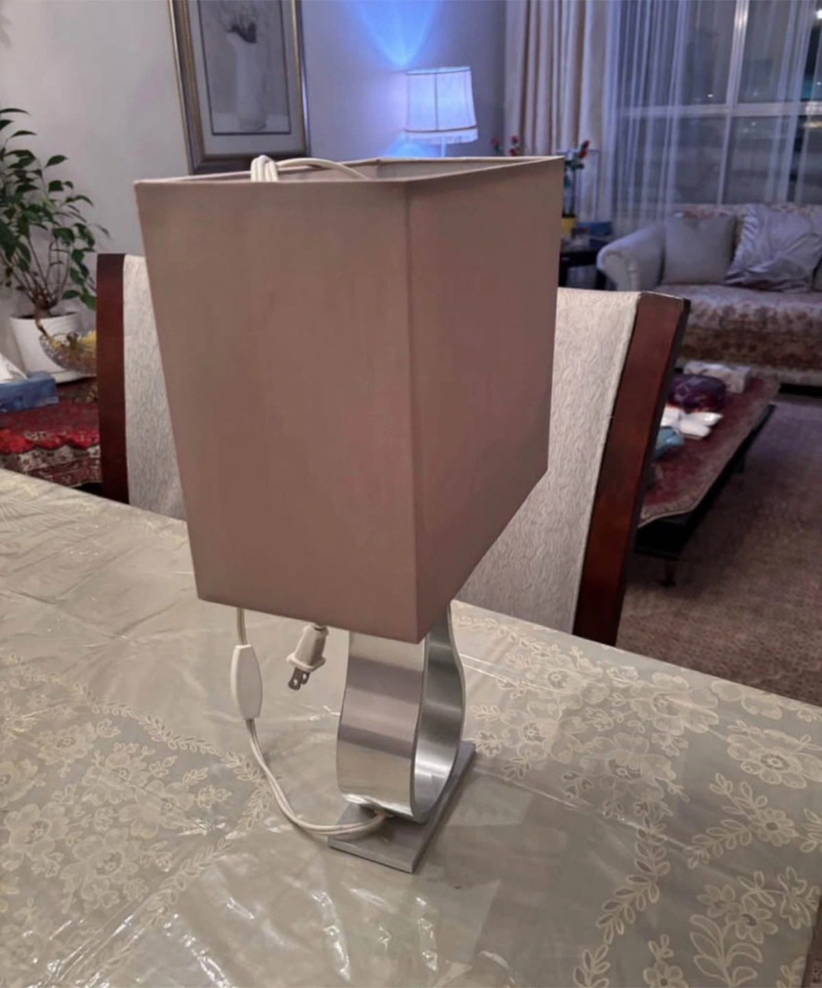 Selling an IKEA KLABB table lamp! It features a modern design with a square shade and a sleek, curved base. Perfect for adding a touch of style to any room