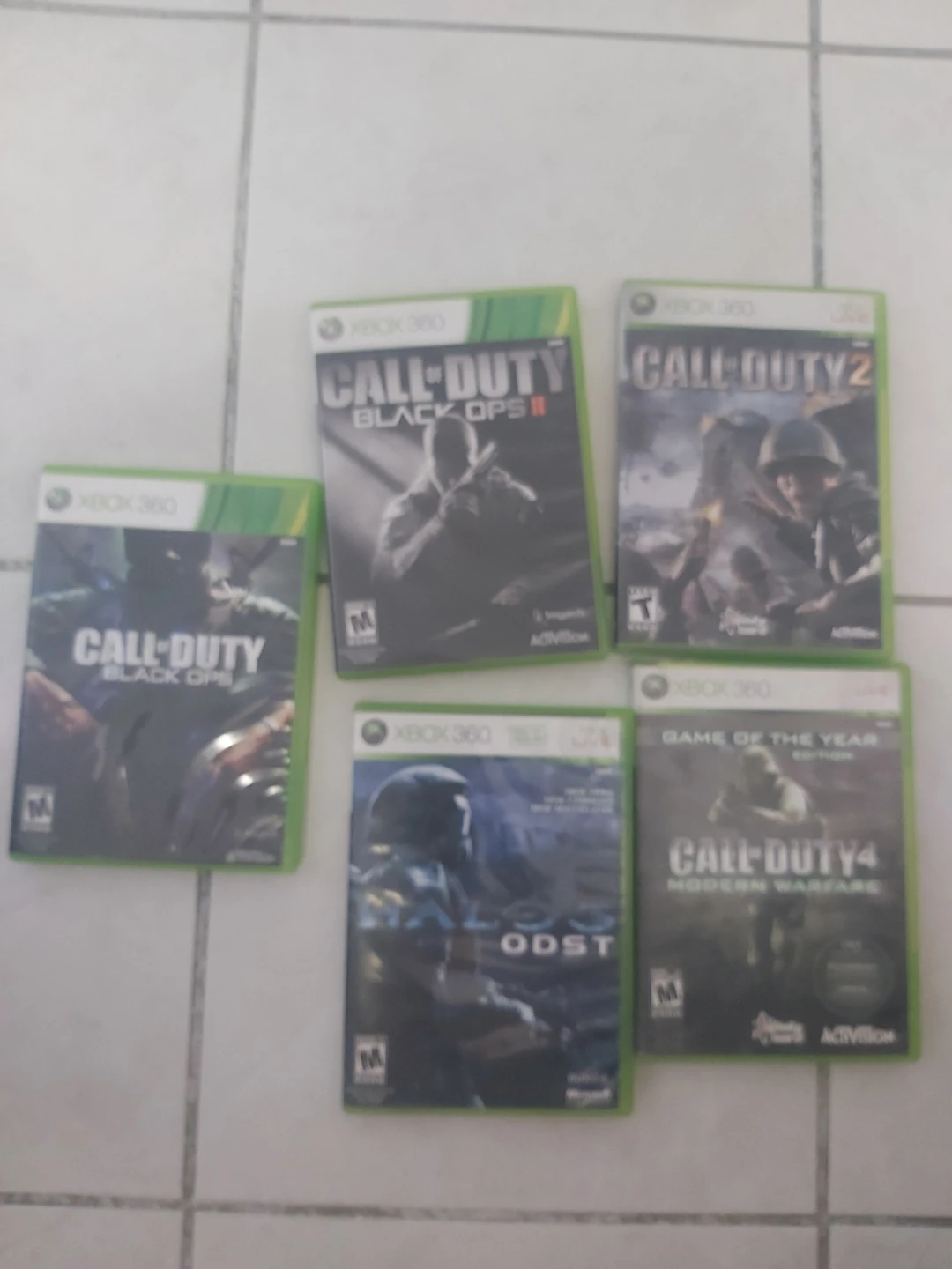 This bundle includes an Xbox 360 console, several Call of Duty games, and multiple controllers. Games include Call of Duty: Black Ops II, Call of Duty 2, Call of Duty: Black Ops, Call of Duty 4: Modern Warfare, and Call of Duty: ODST. It's a great collection for any gamer! White xbox is missing cords other than that works fine