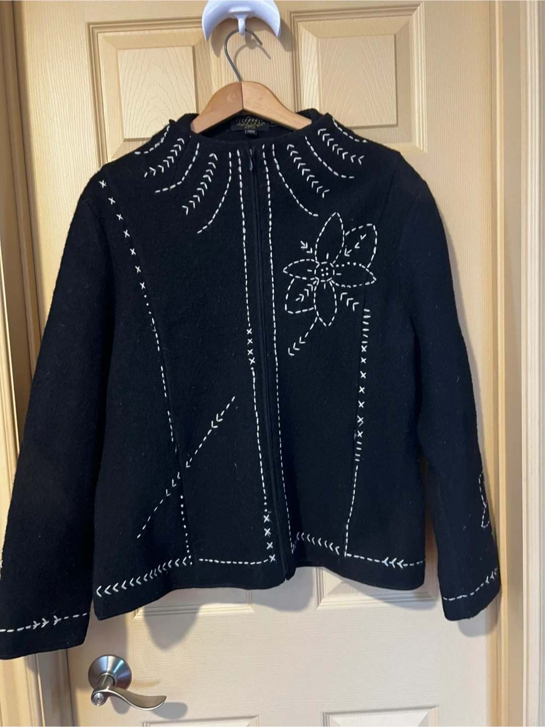 Icelandic Design Black Embroidered Wool Jacket XL