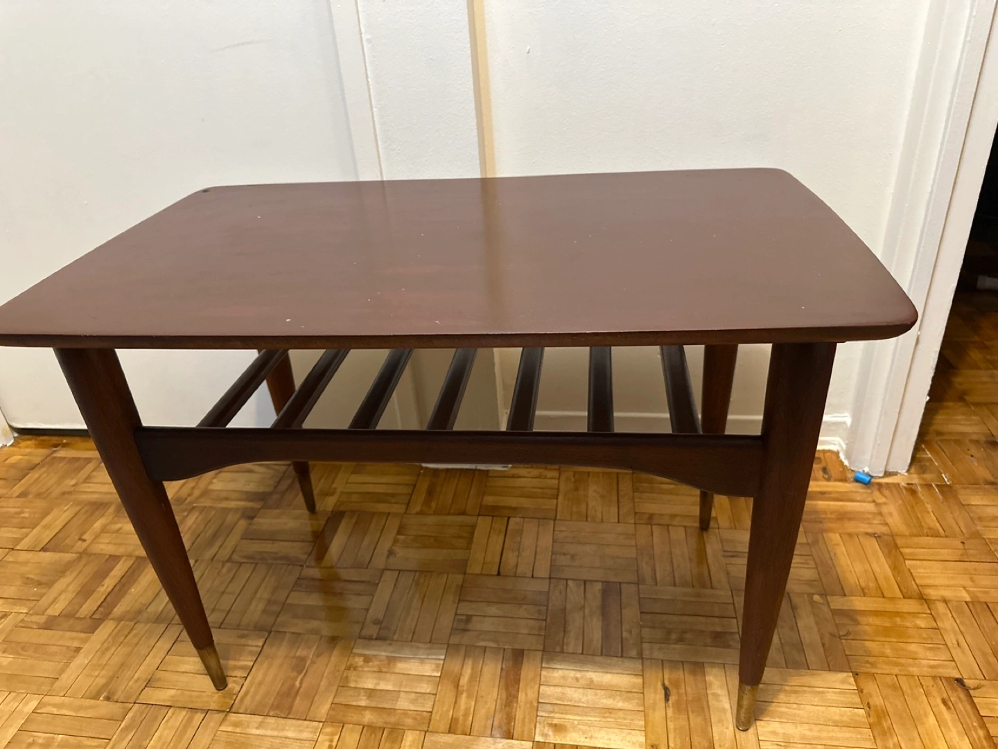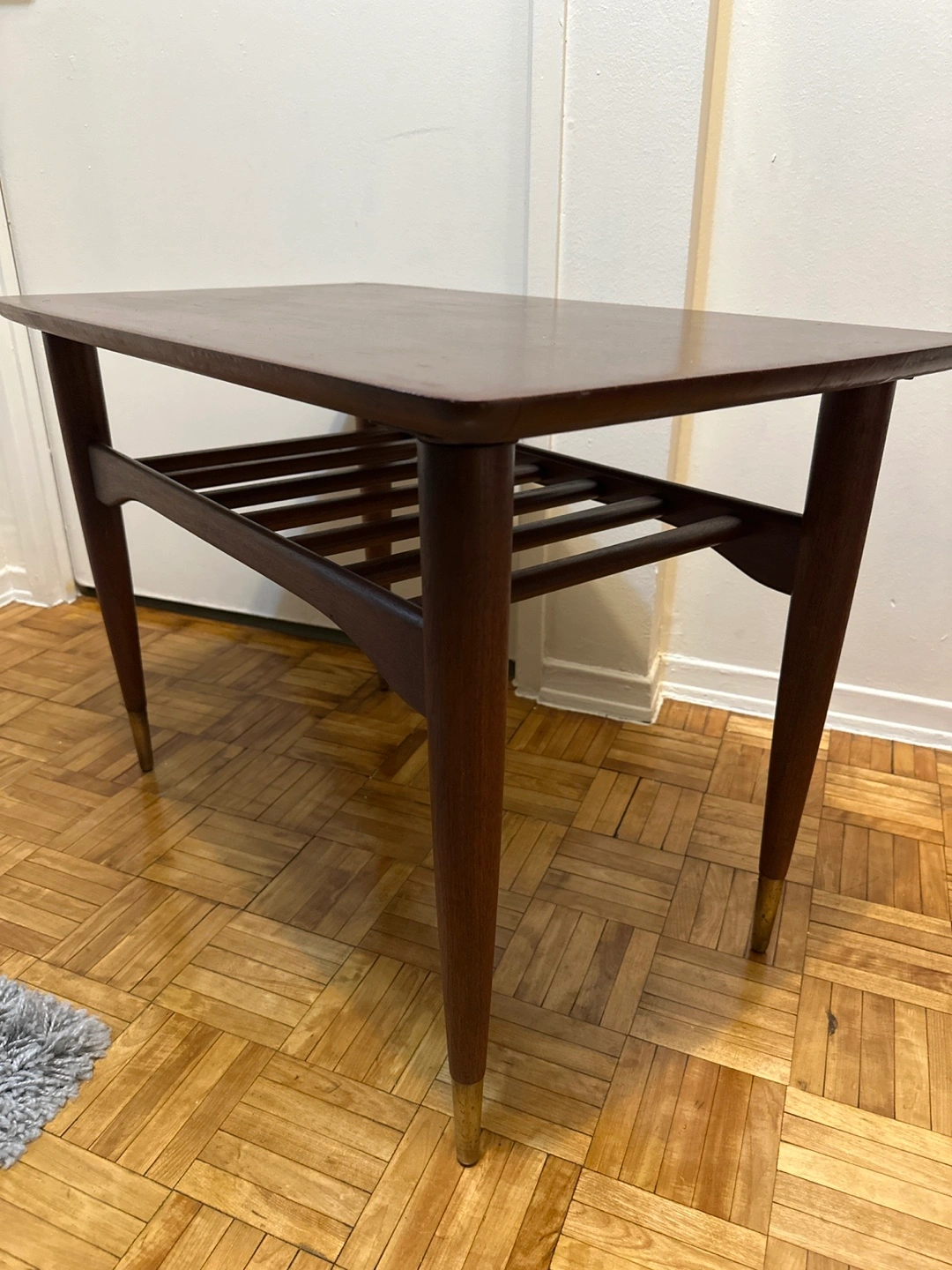 Mid-Century Modern Side Table with Brass Tips
