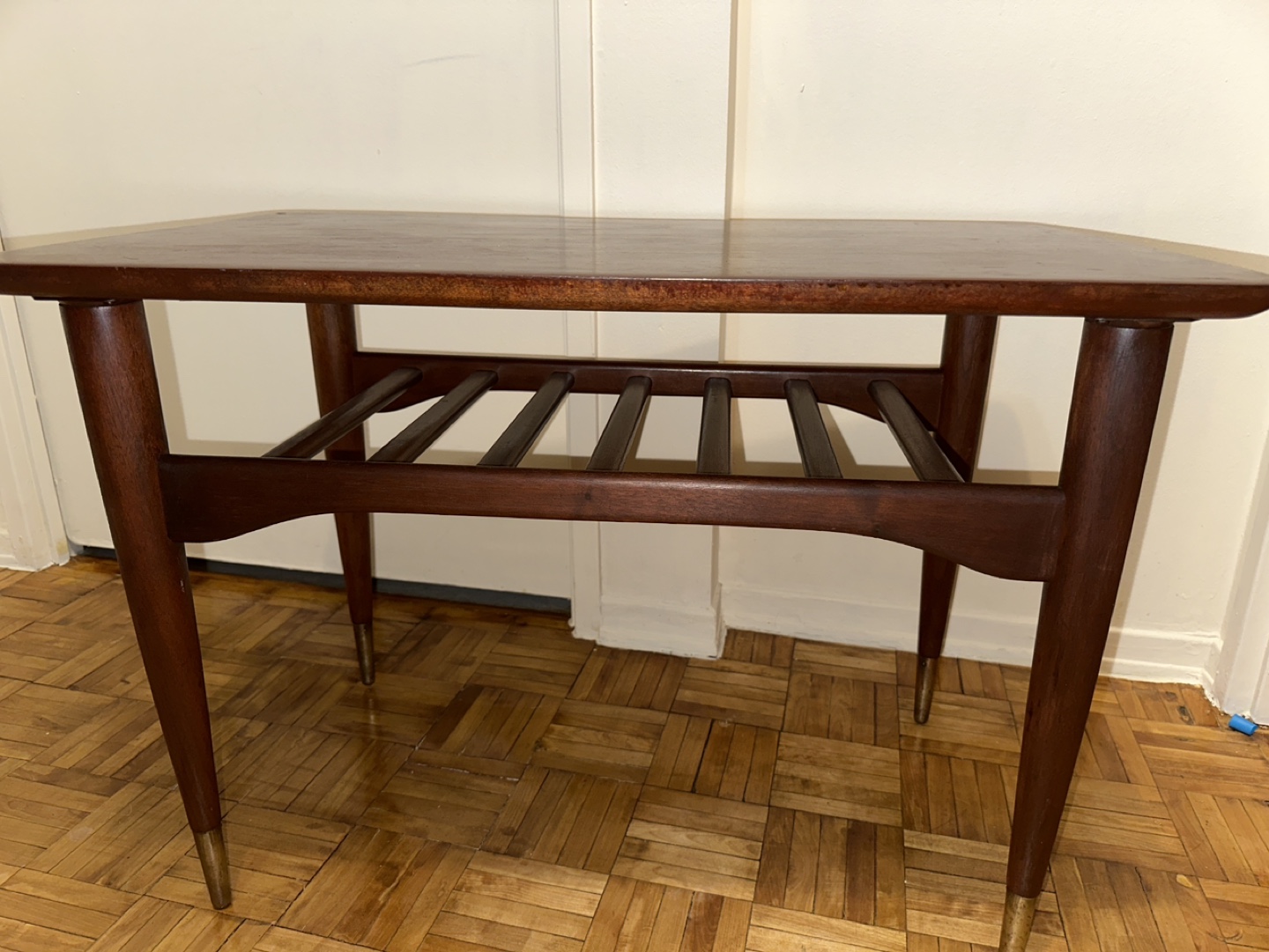 Mid-Century Modern Side Table with Brass Tips
