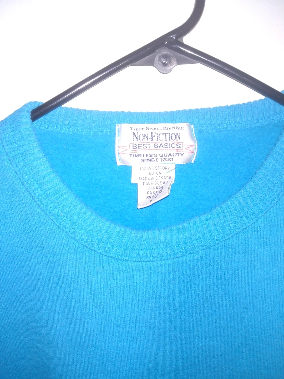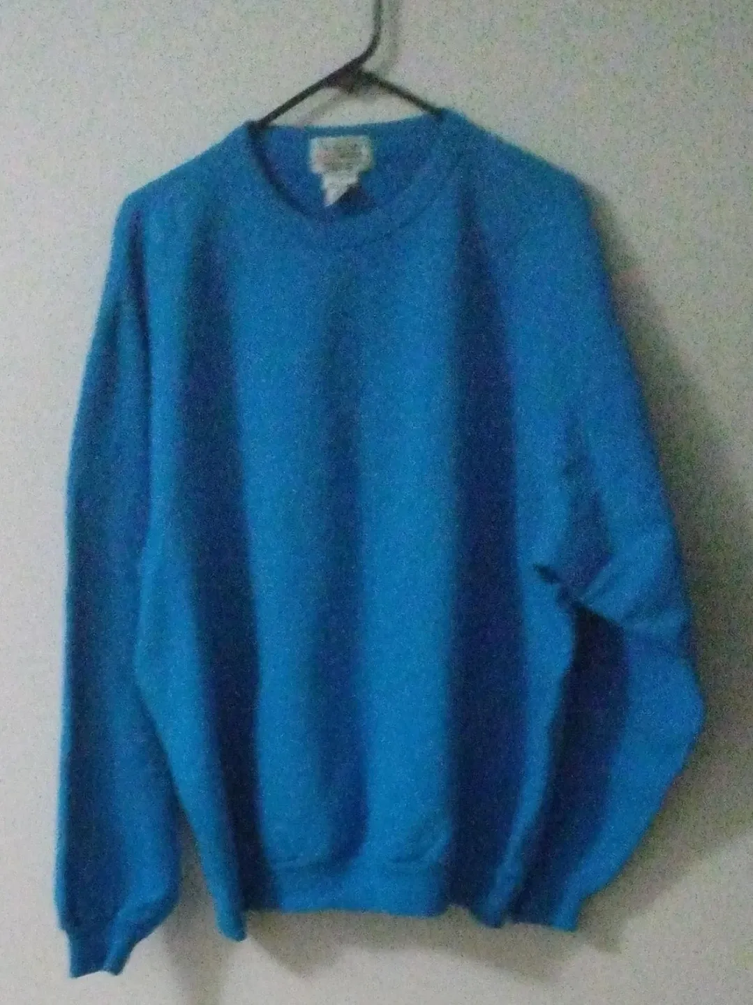 This is a blue crewneck sweatshirt. It's made from a comfortable blend of materials. This sweatshirt is great for casual wear any time of year!
